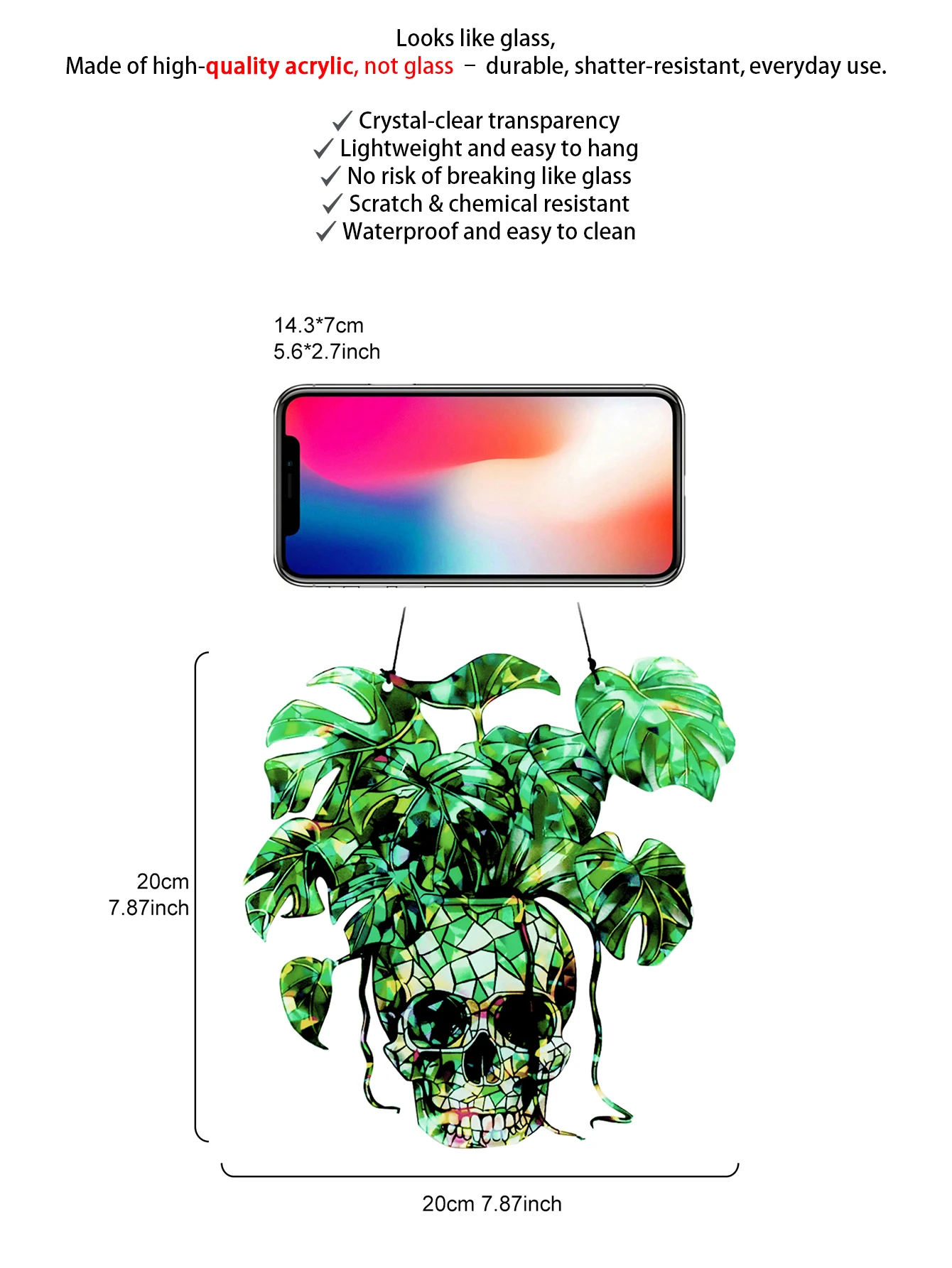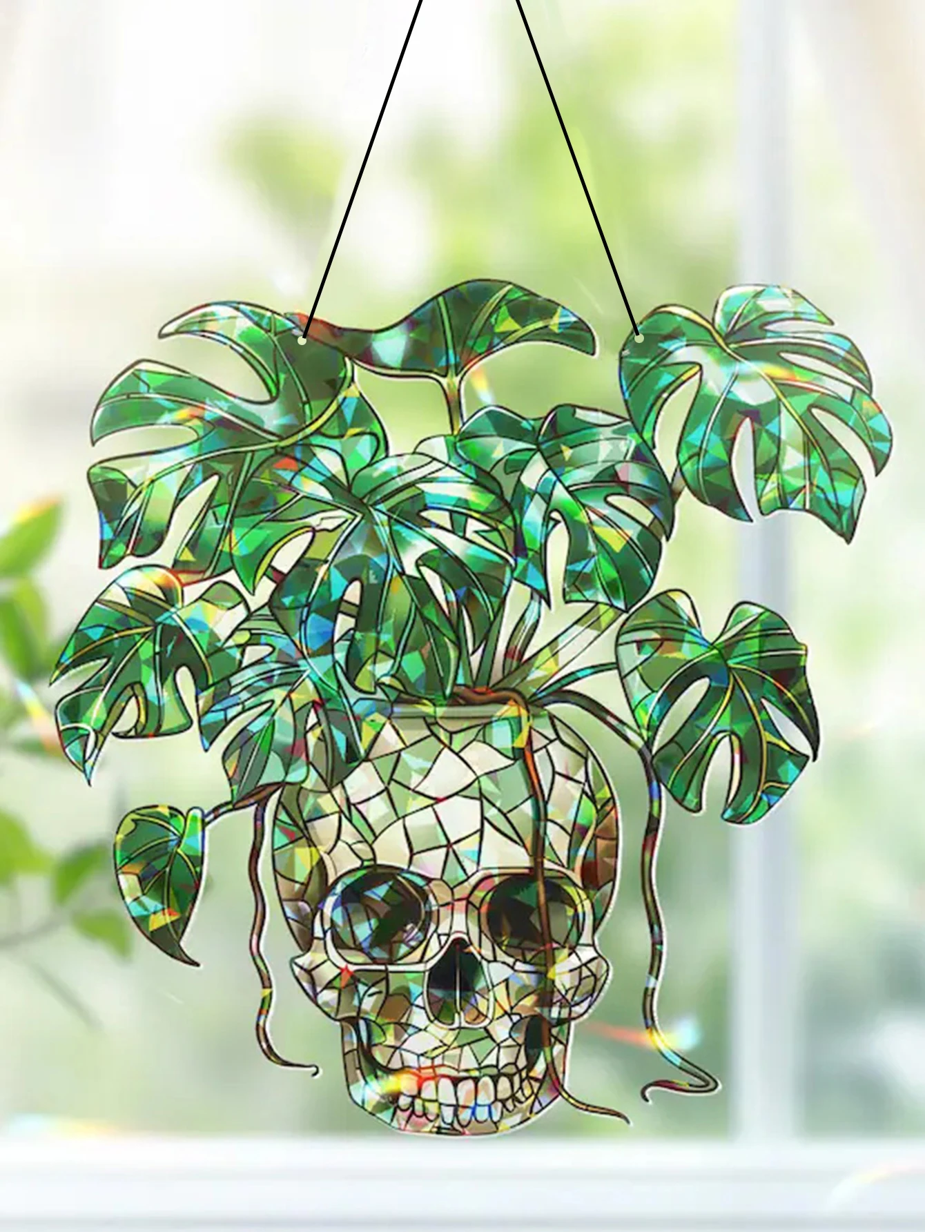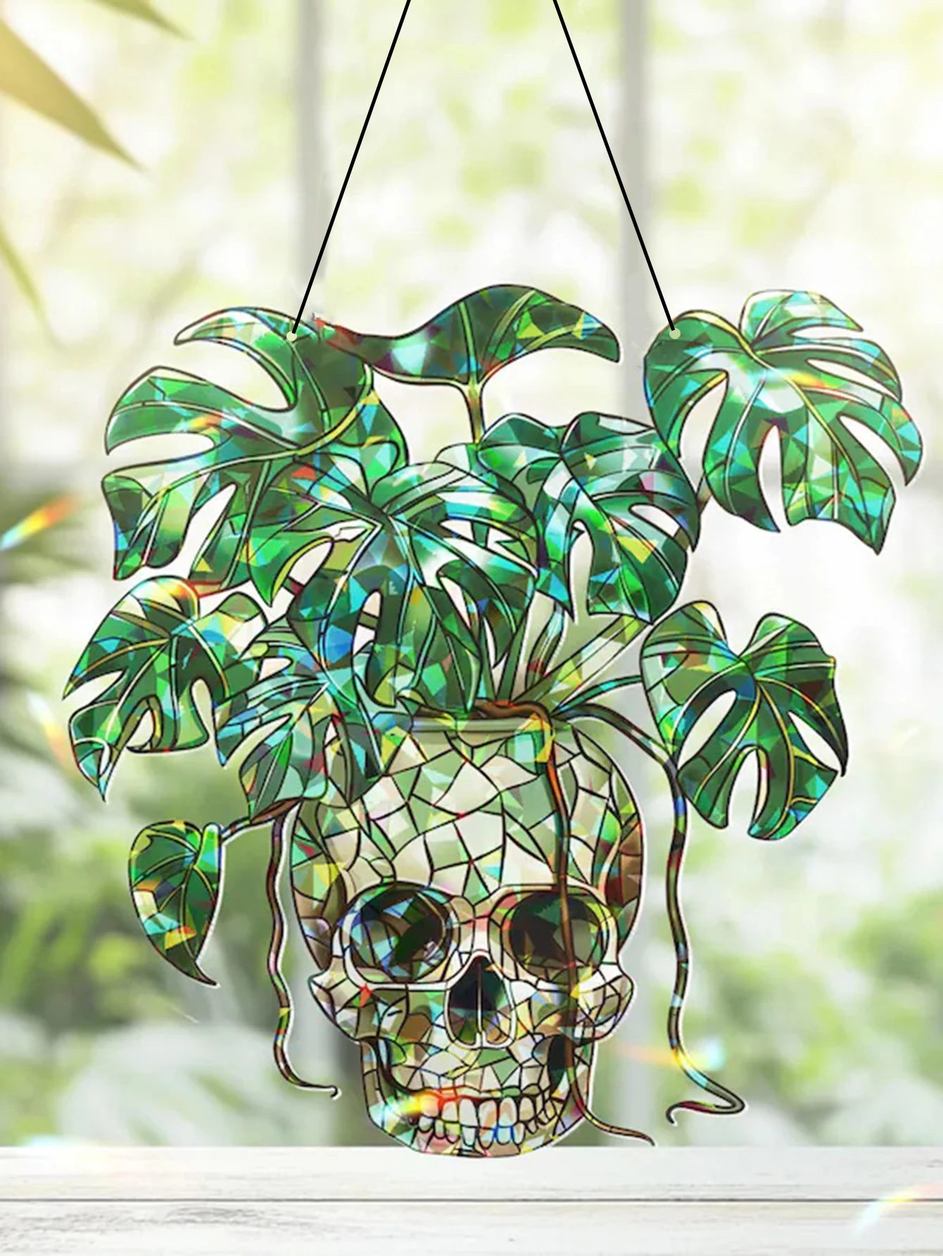 💚 Green Skull Hanging Decor – Acrylic Plant Pot Leaf Window Ornament