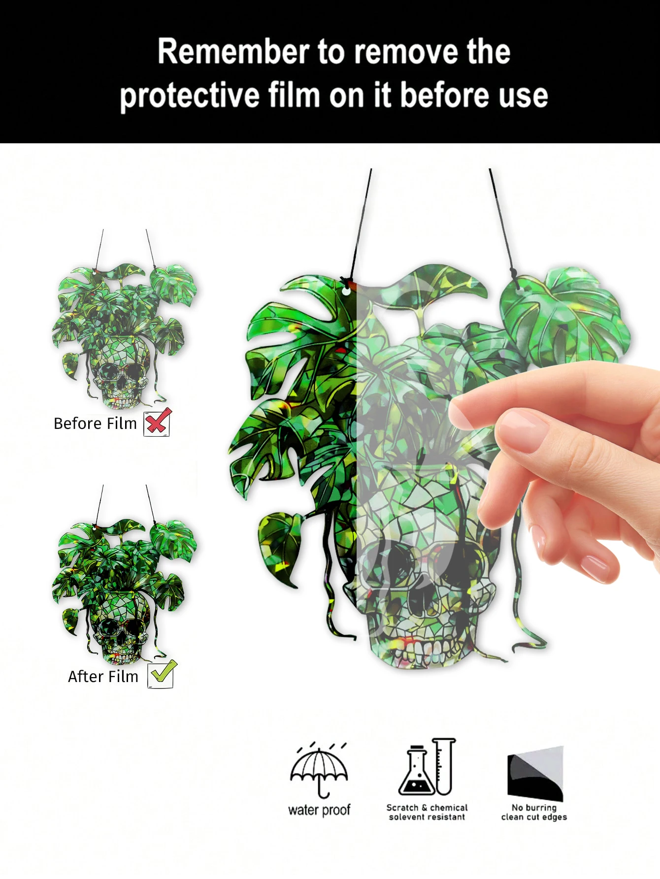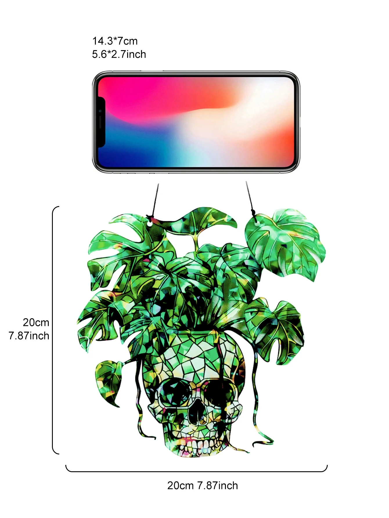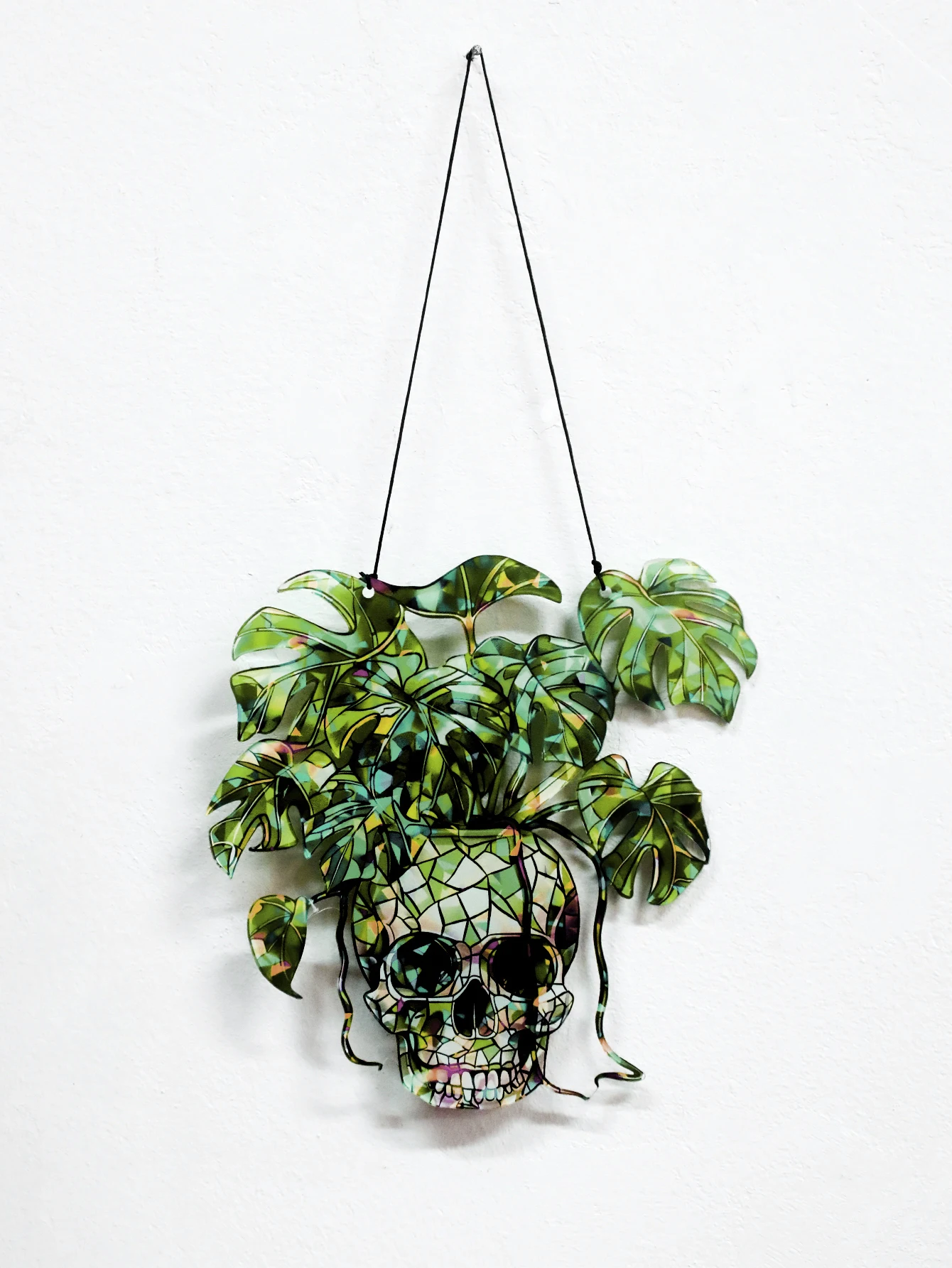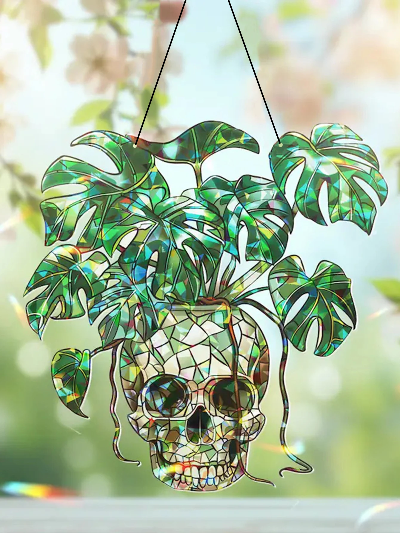 💚 Green Skull Hanging Decor – Acrylic Plant Pot Leaf Window Ornament
