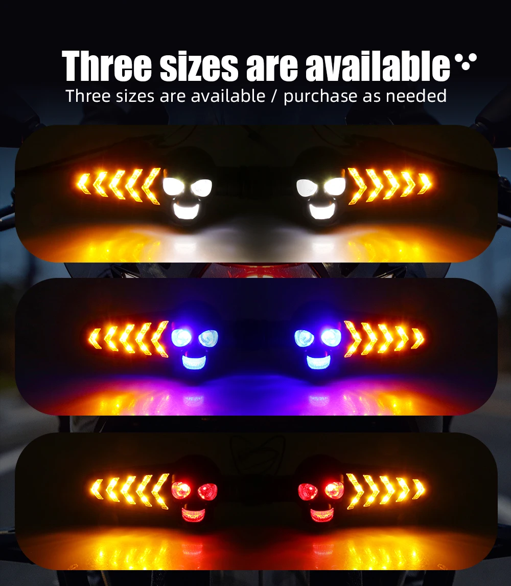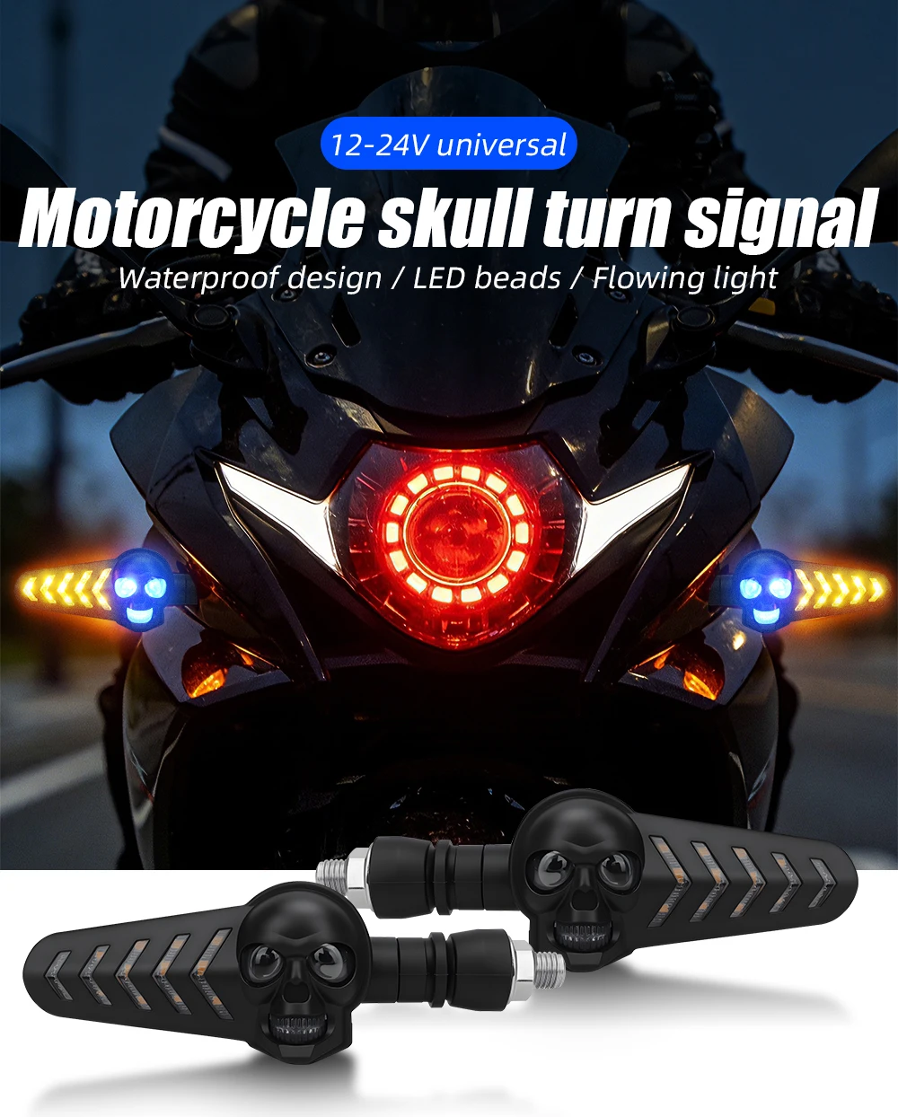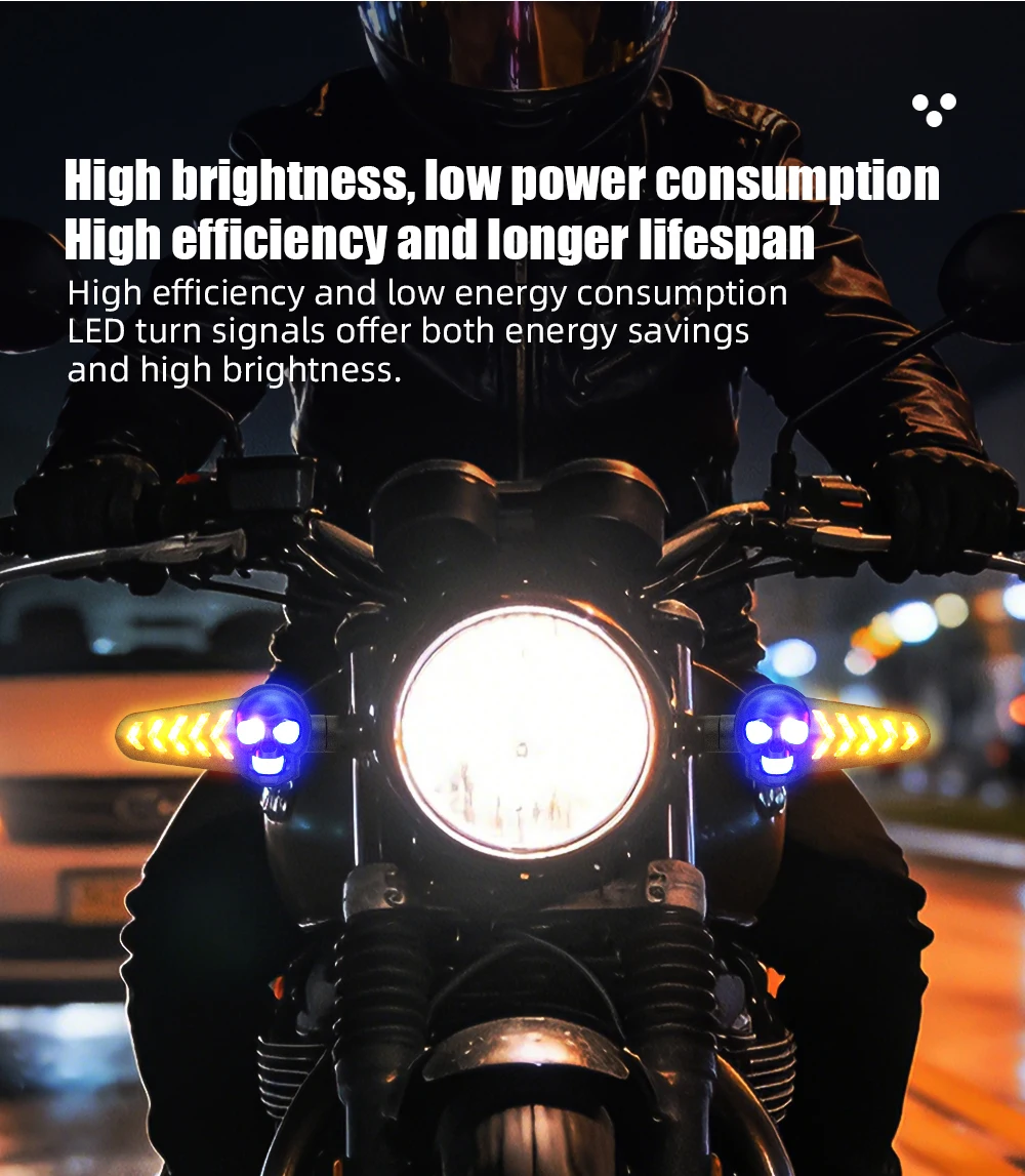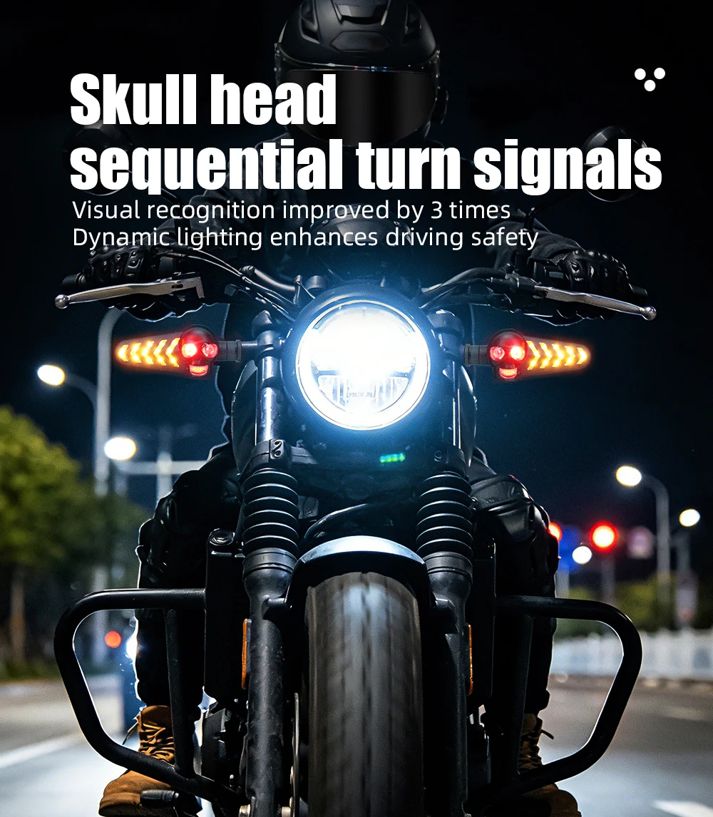 Skull LED Flowing Motorcycle Turn Signals – Tail, Brake & DRL Lights 💀🏍️