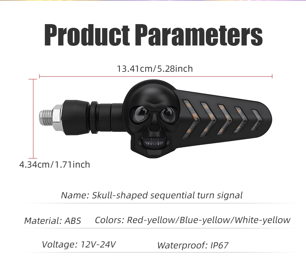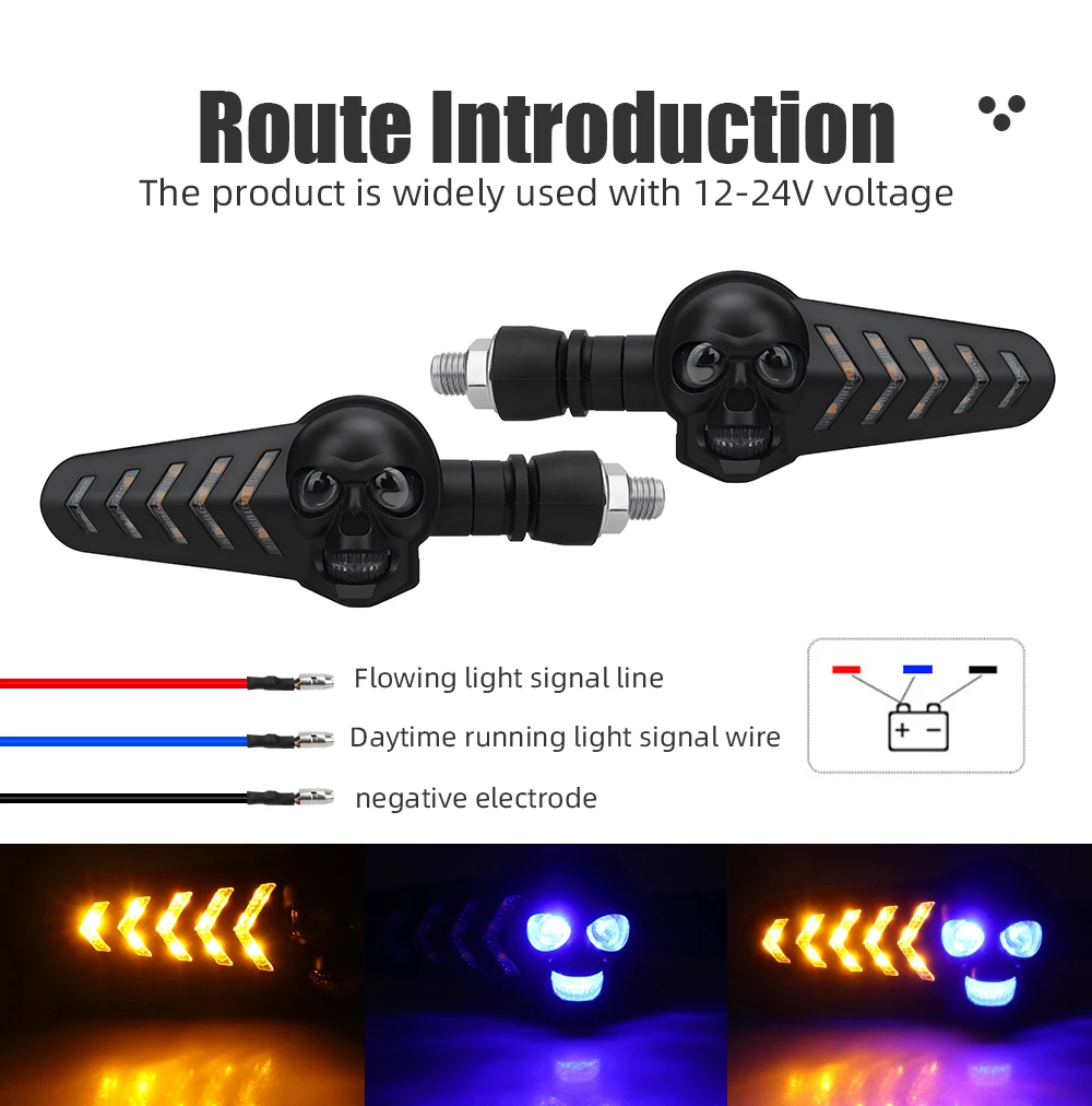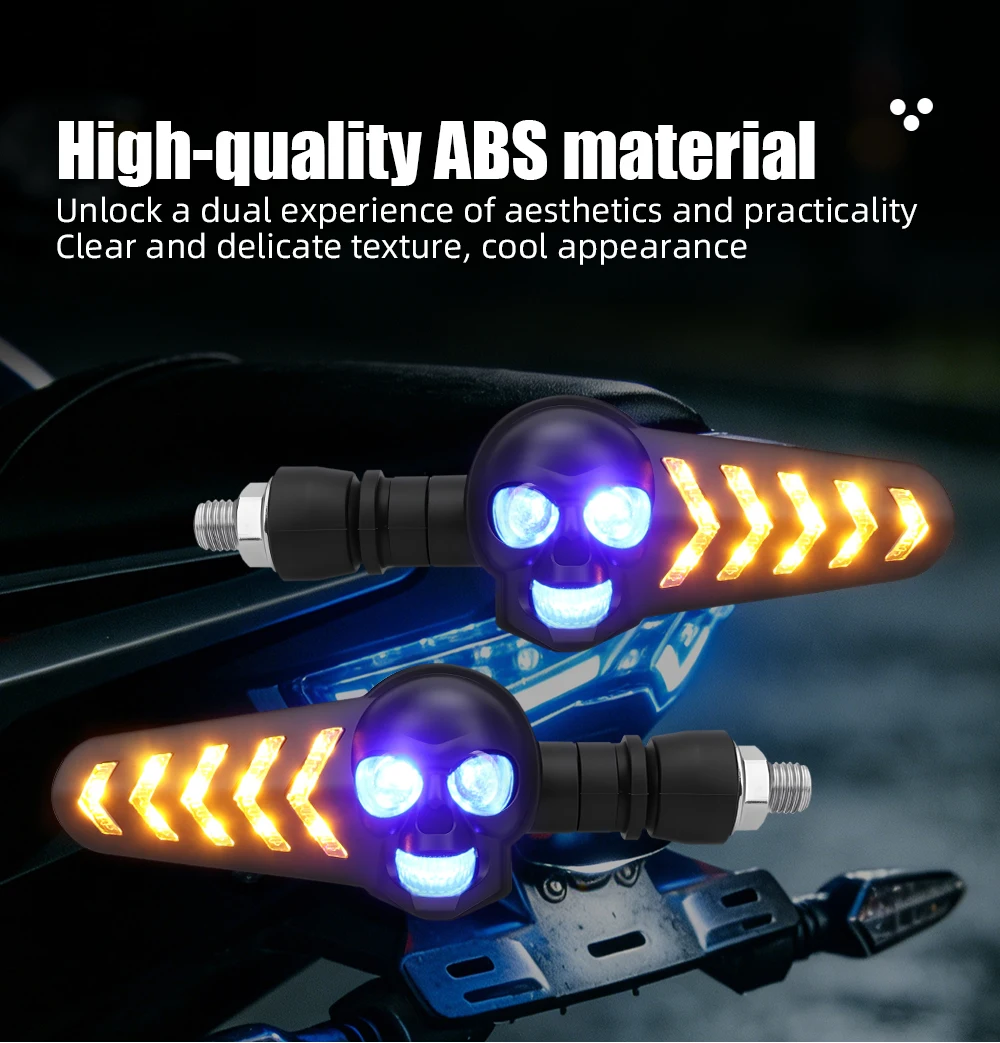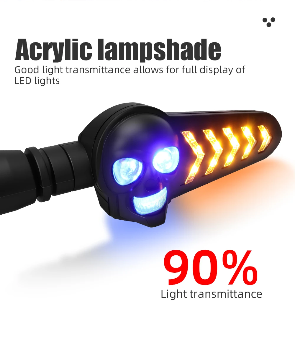 Skull LED Flowing Motorcycle Turn Signals – Tail, Brake & DRL Lights 💀🏍️