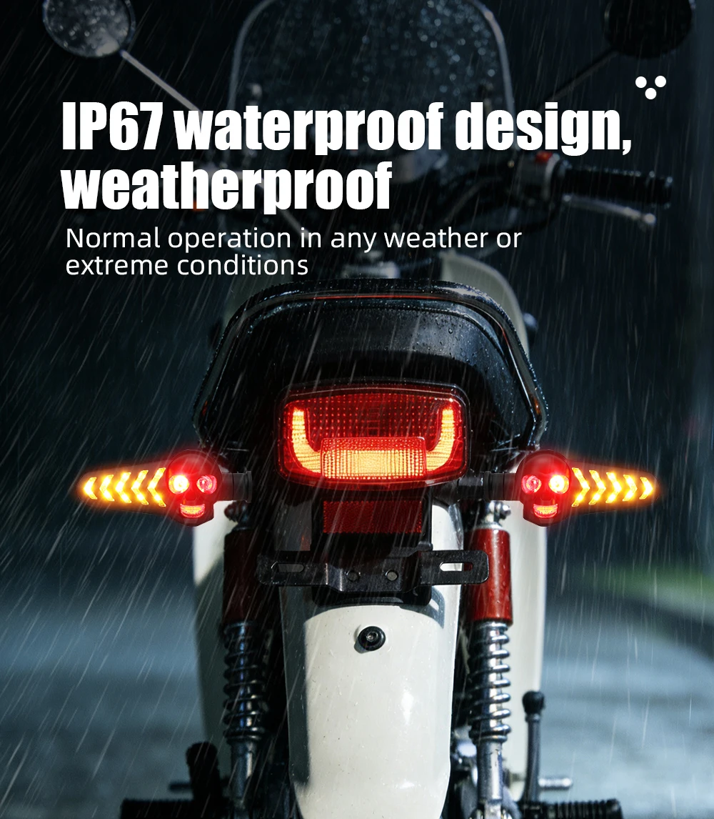 Multi-Function Lighting – Works as turn signal, tail light, brake light, and DRL.