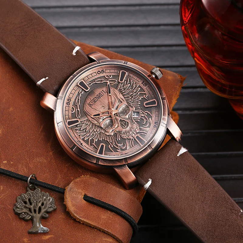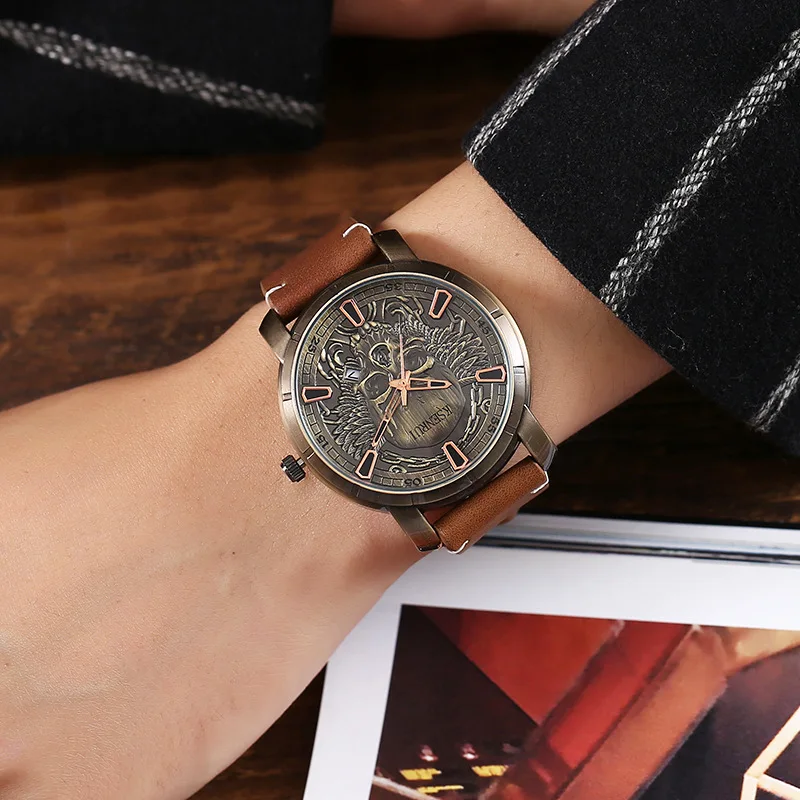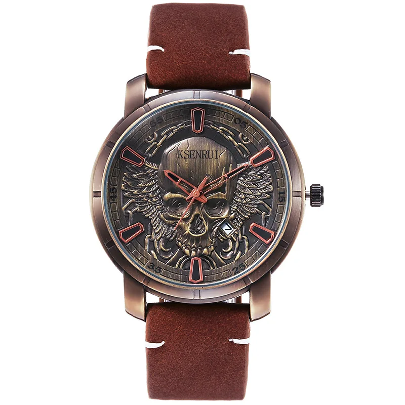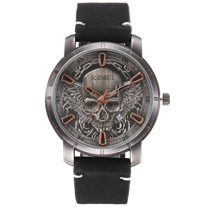 Crafted with a durable stainless steel case and paired with a premium leather strap, it delivers both comfort and long-lasting quality. The detailed skull design adds a unique, rebellious touch, making it perfect for everyday wear or special occasions.