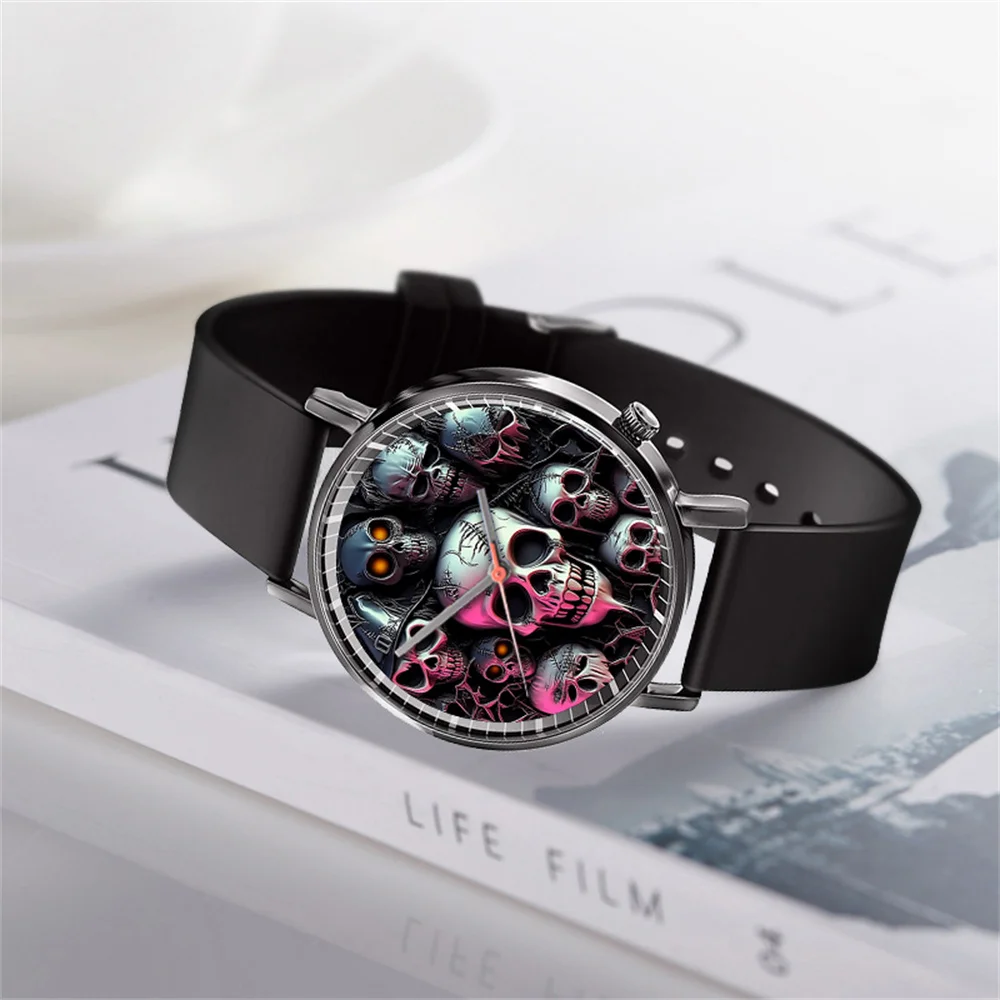 Skull Quartz Watch – Black Silicone Unisex Gift