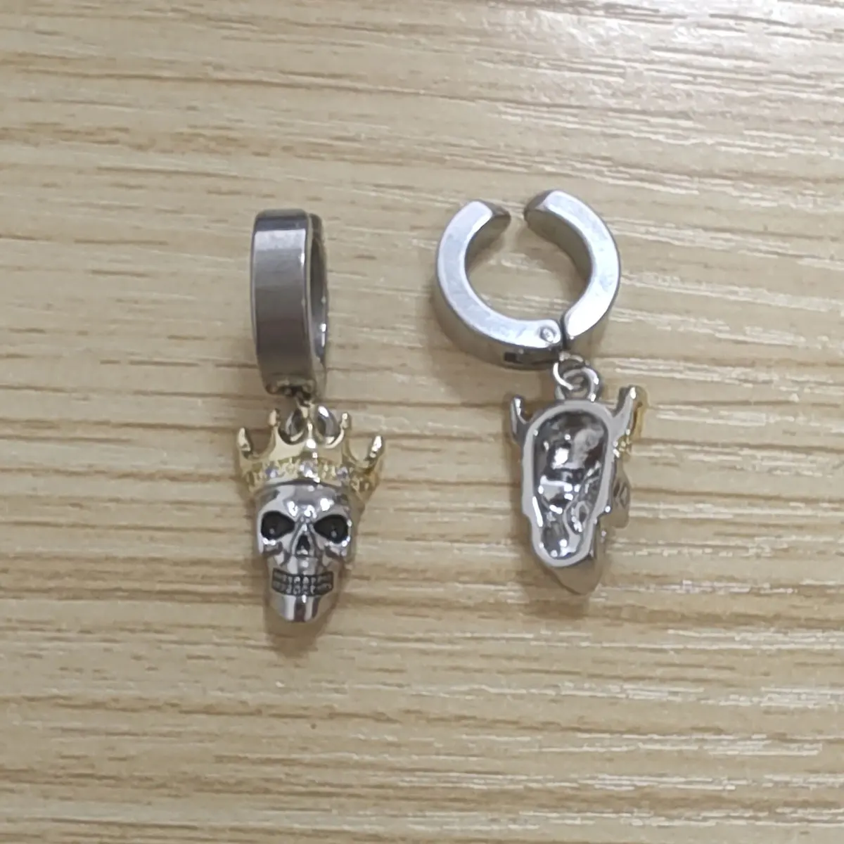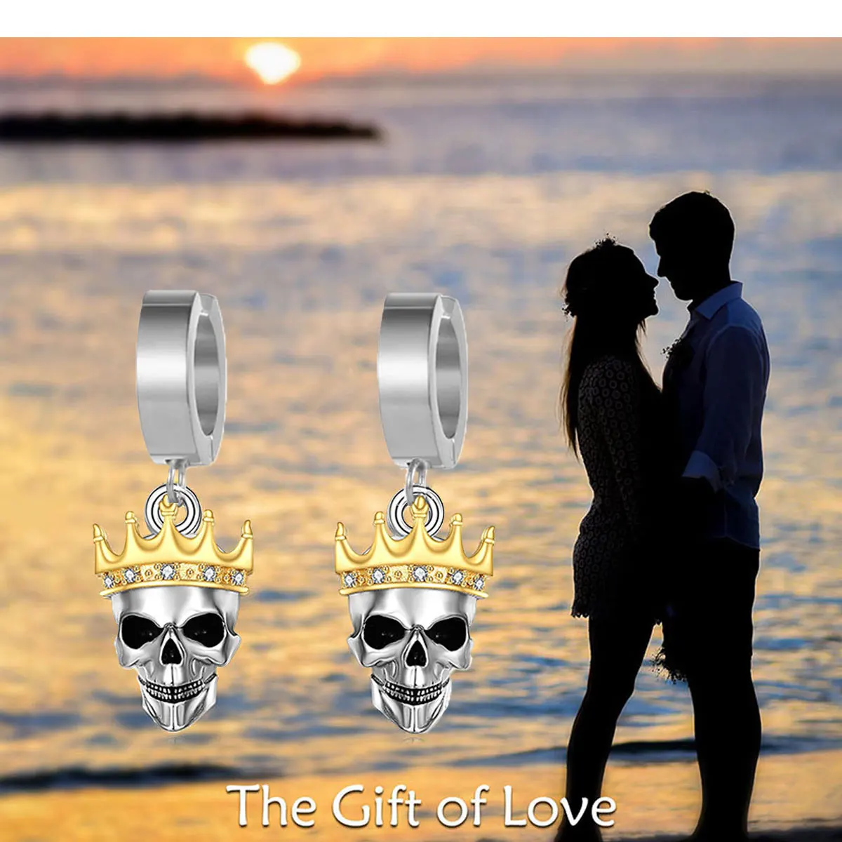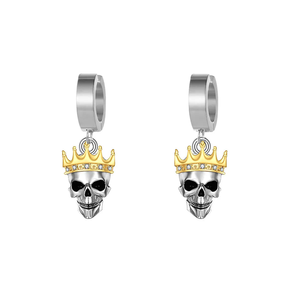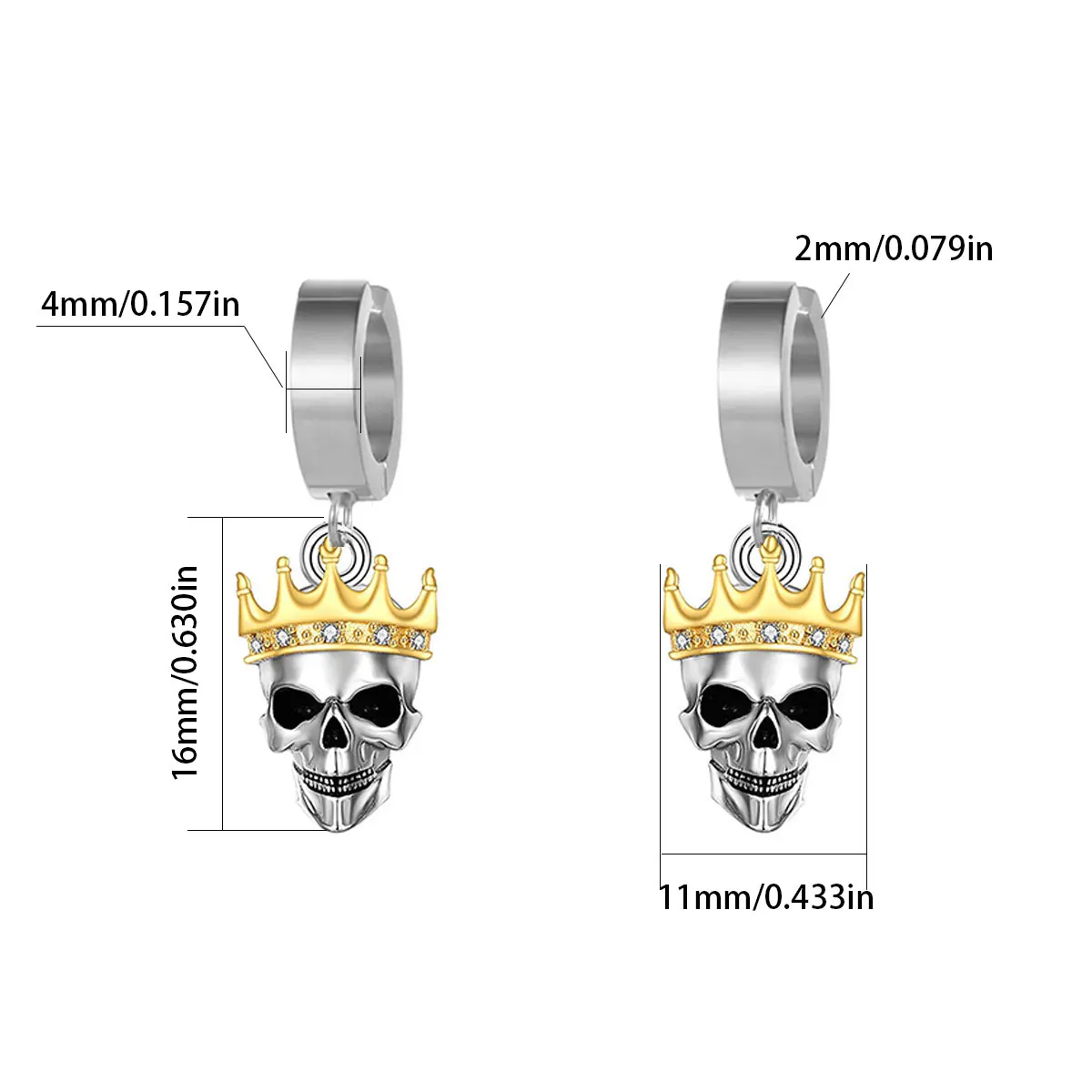 Add a touch of dark elegance to your look with these Skull Crown Zircon Ear Clips, designed for women who love gothic charm with a hint of sparkle. Featuring a detailed skull motif topped with a crown and inlaid with shining zircon stones, these ear clips deliver a bold yet refined statement.