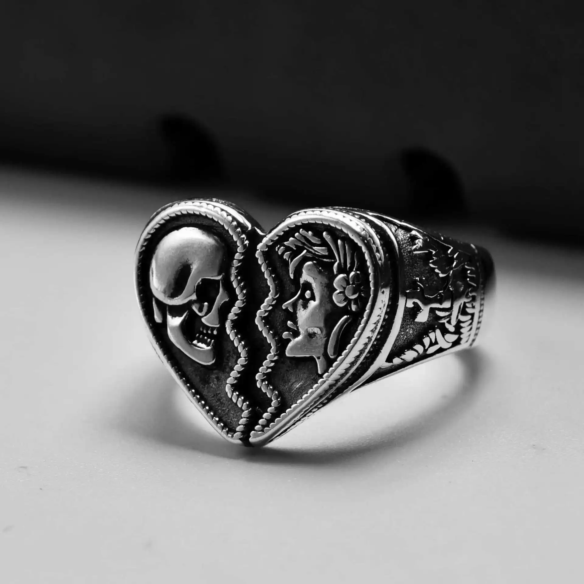🖤 Skull Lover Ring – Vintage Gothic Heart Ring (Adjustable)
