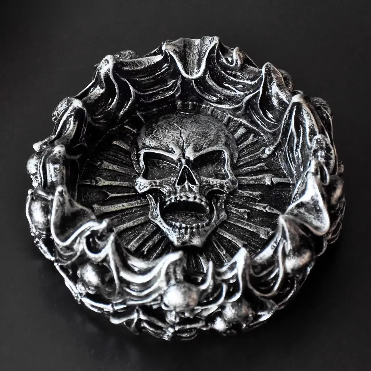 Ignite your décor with the American Flame Skull Ashtray, a bold fusion of art and attitude. Crafted from high-quality resin, this multifunctional ornament features a flaming skull design that brings an edge of rebellion and style to any space. Perfect for use as an ashtray, coin holder, or striking decorative piece, it adds personality to your living room, office, or study desk.