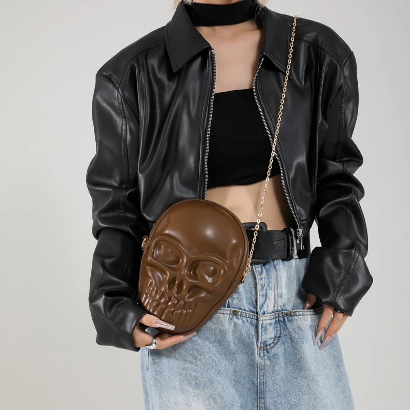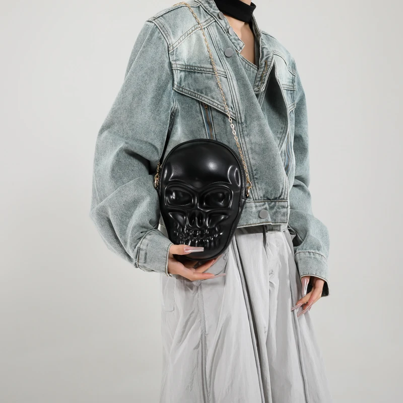 Unleash your rebellious side with the Edgy Skull Punk Crossbody Bag — a bold fashion statement for fearless women. Crafted with a durable hard-shell design, this bag features a striking 3D skull head centerpiece that instantly turns heads. The sleek PU leather finish pairs perfectly with chunky metal chains, giving it that authentic streetwear edge.
