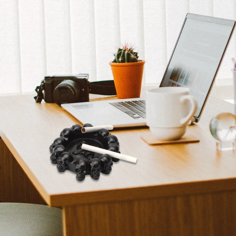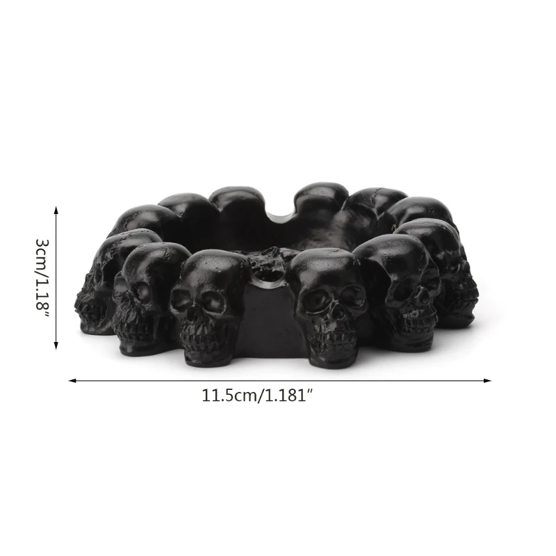 This ashtray is ideal for home, restaurant, bar, coffee shop, or office use. Its convenient design securely holds unburned cigarettes or cigars while keeping your surface clean. Beyond functionality, it also serves as a unique Halloween or gothic decorative piece that complements any dark-themed setting.