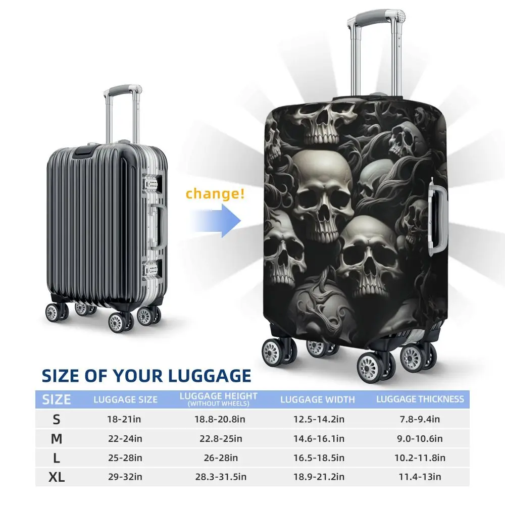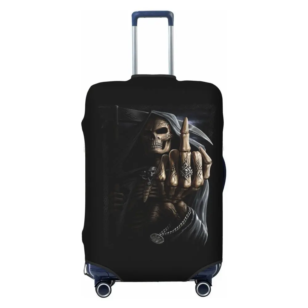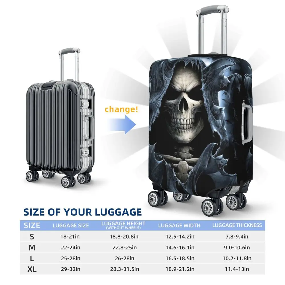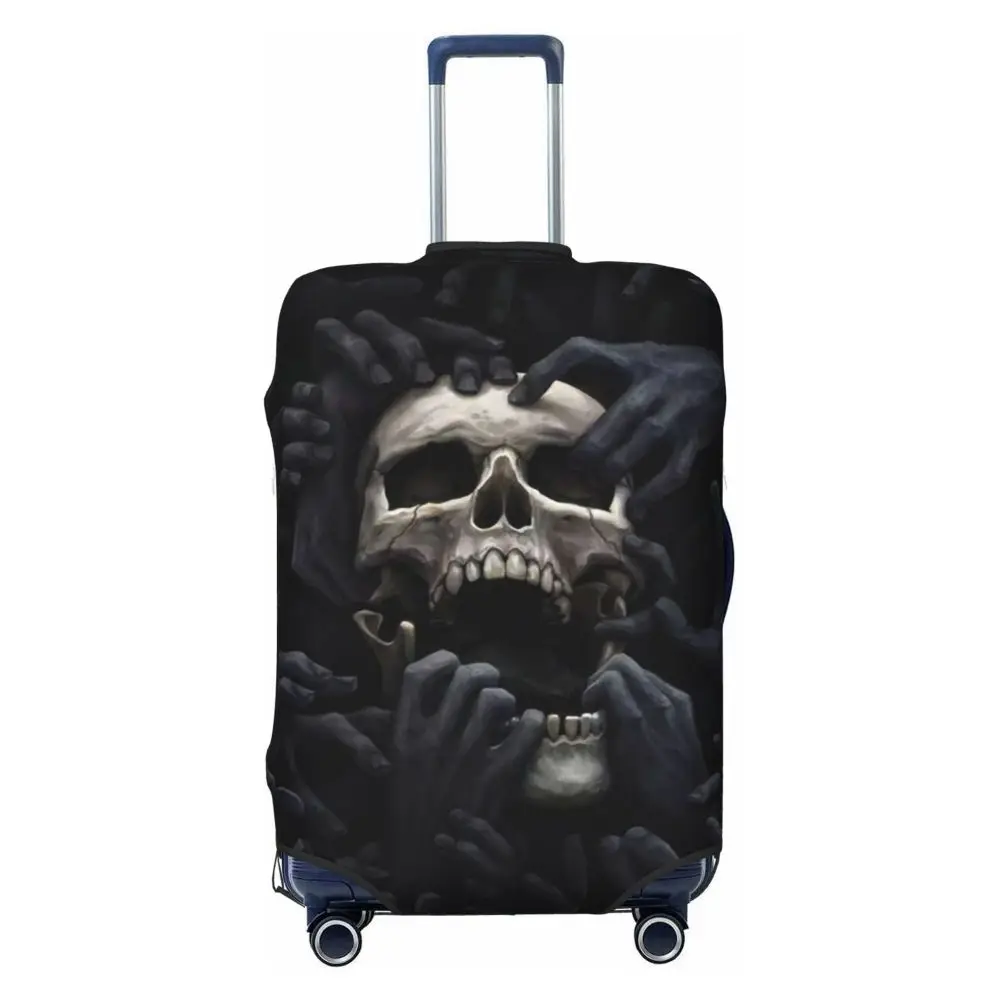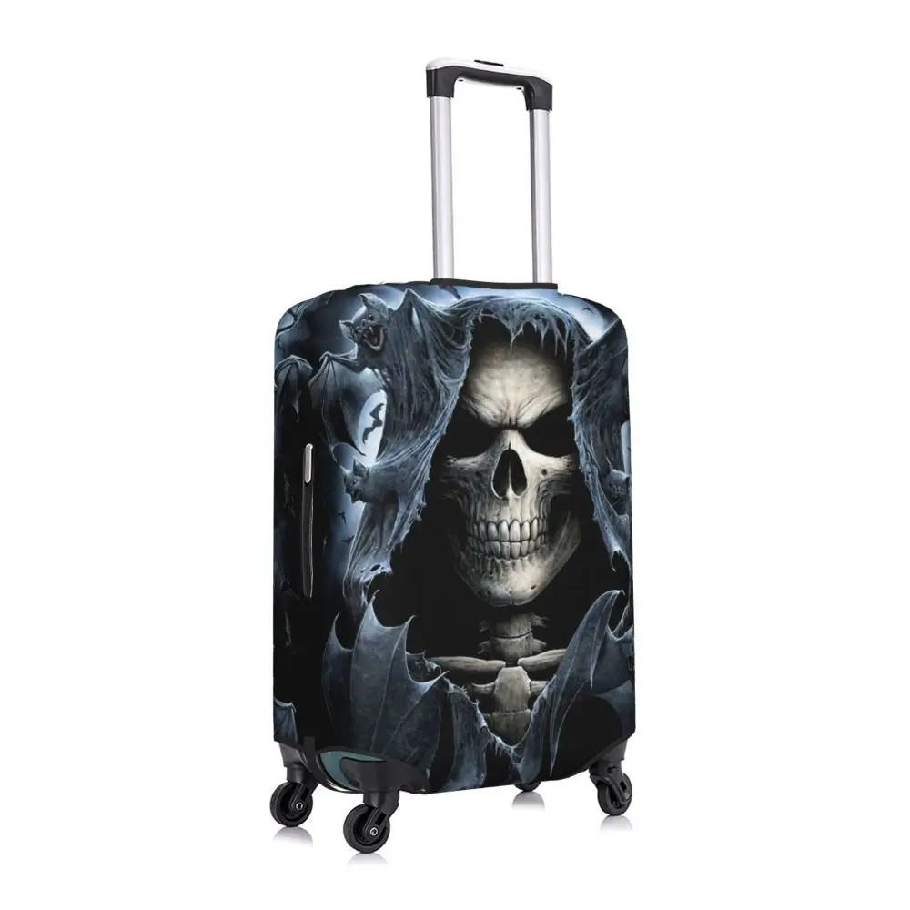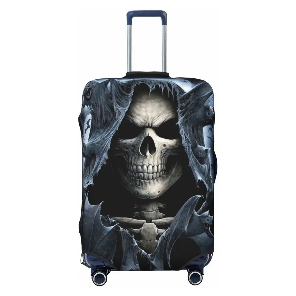 Protect your luggage in striking gothic fashion with this skeleton death skull suitcase cover, designed for travelers who want both bold style and reliable protection. Made from durable, premium fabric, this cover is water-resistant, helping guard your suitcase against rain, splashes, dust, and dirt during every journey. The heat-resistant material maintains its shape and vivid print even under strong sun exposure and warm travel conditions.