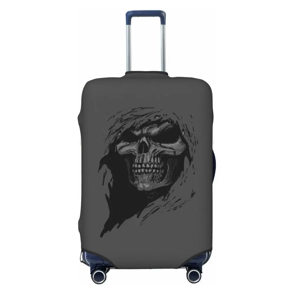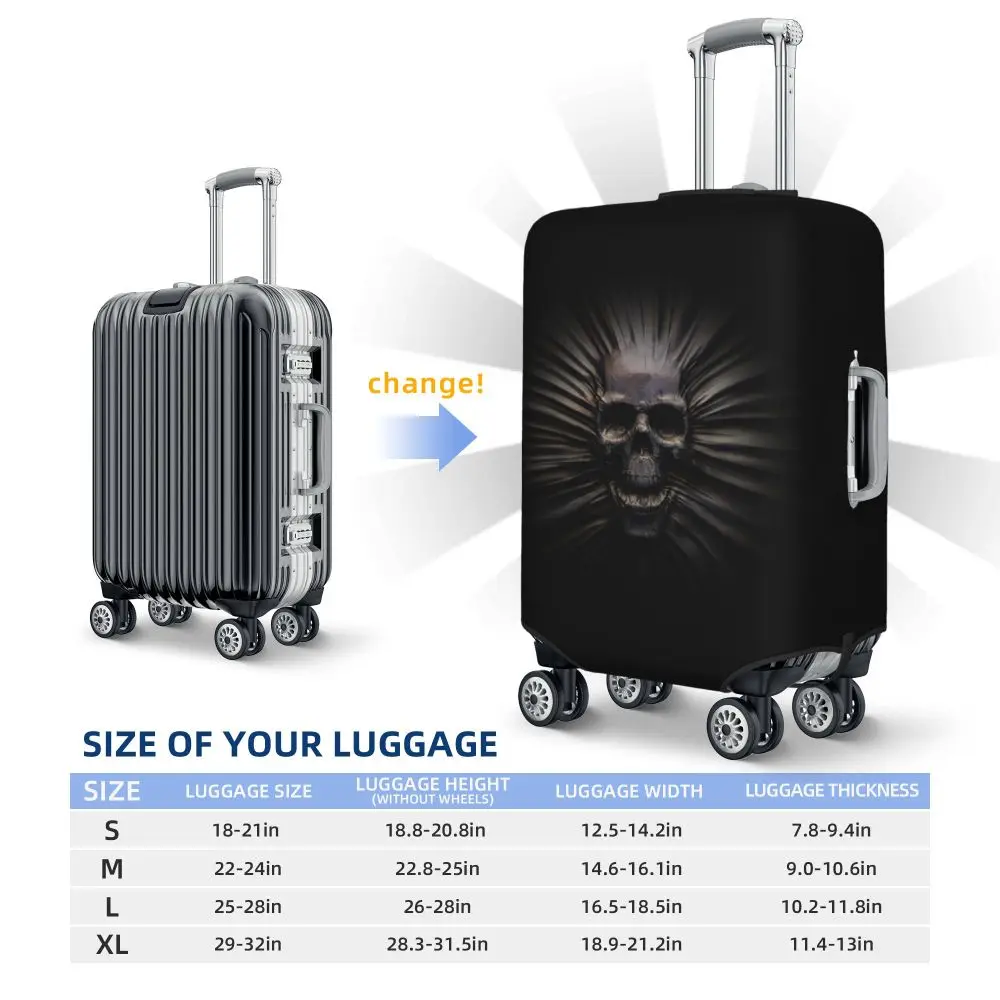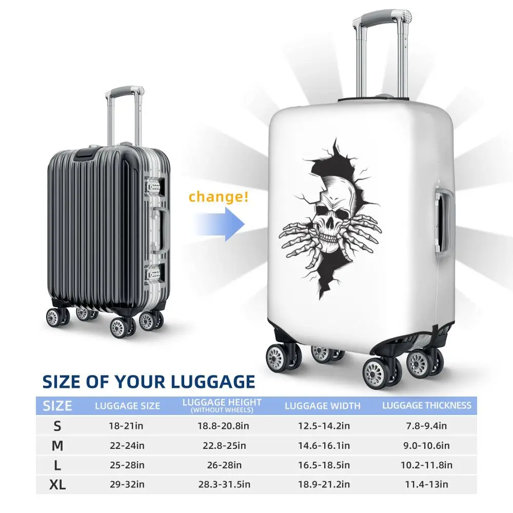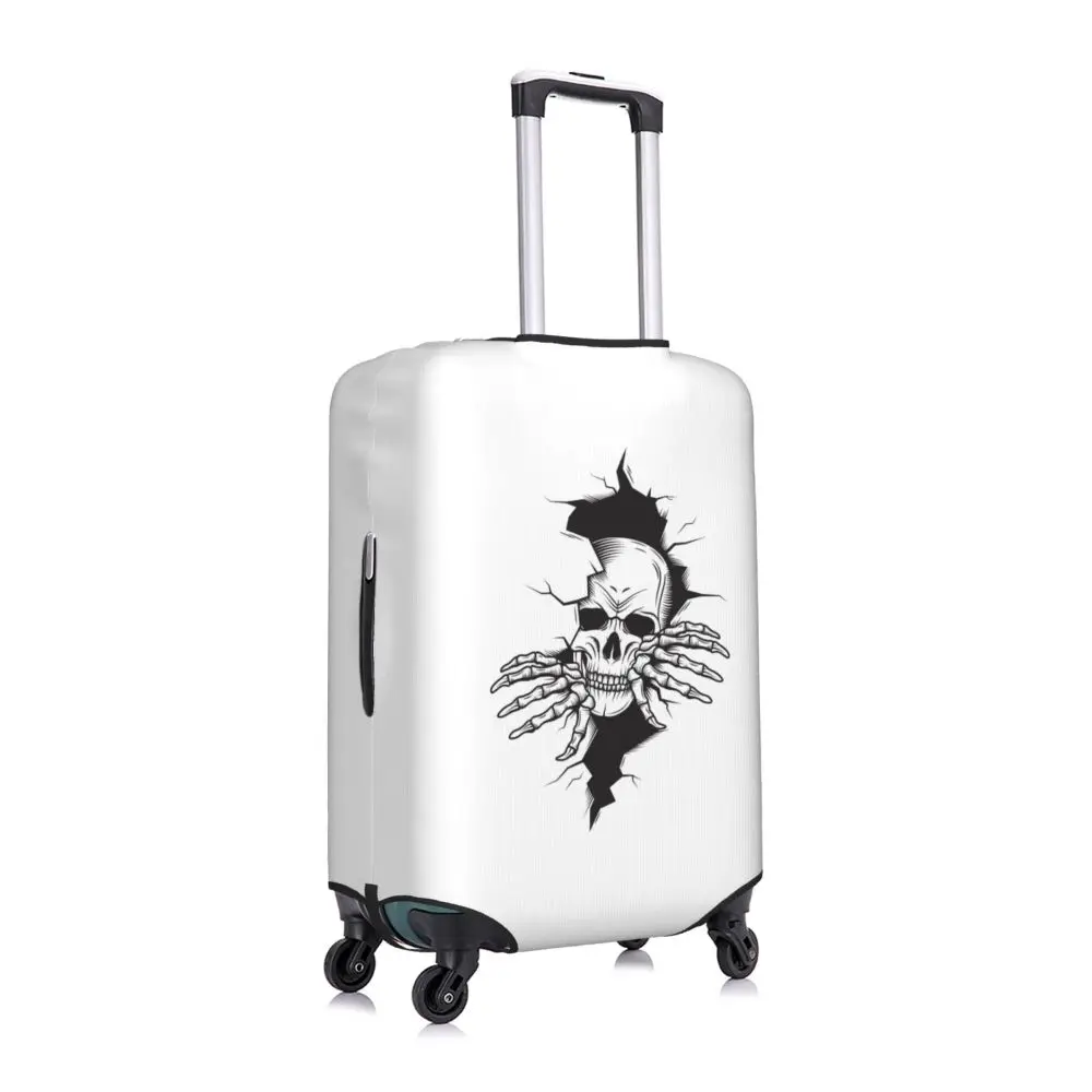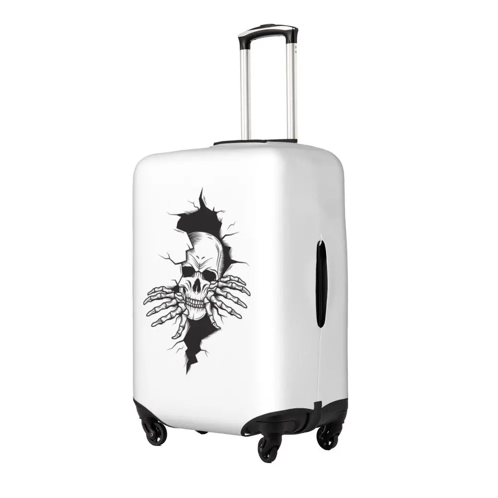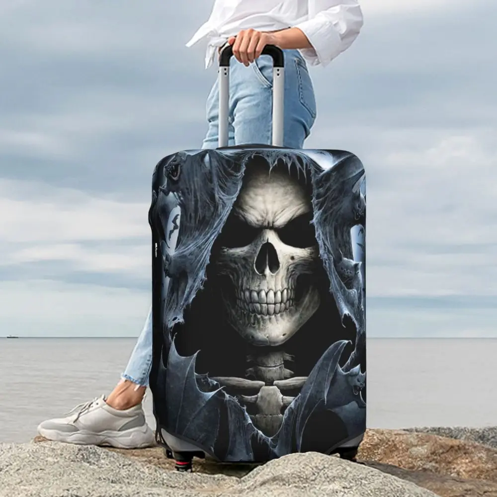Protect your luggage in striking gothic fashion with this skeleton death skull suitcase cover, designed for travelers who want both bold style and reliable protection. Made from durable, premium fabric, this cover is water-resistant, helping guard your suitcase against rain, splashes, dust, and dirt during every journey. The heat-resistant material maintains its shape and vivid print even under strong sun exposure and warm travel conditions.