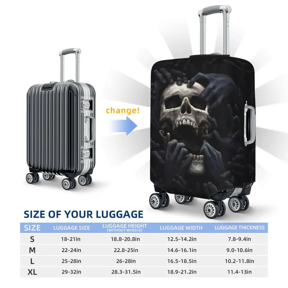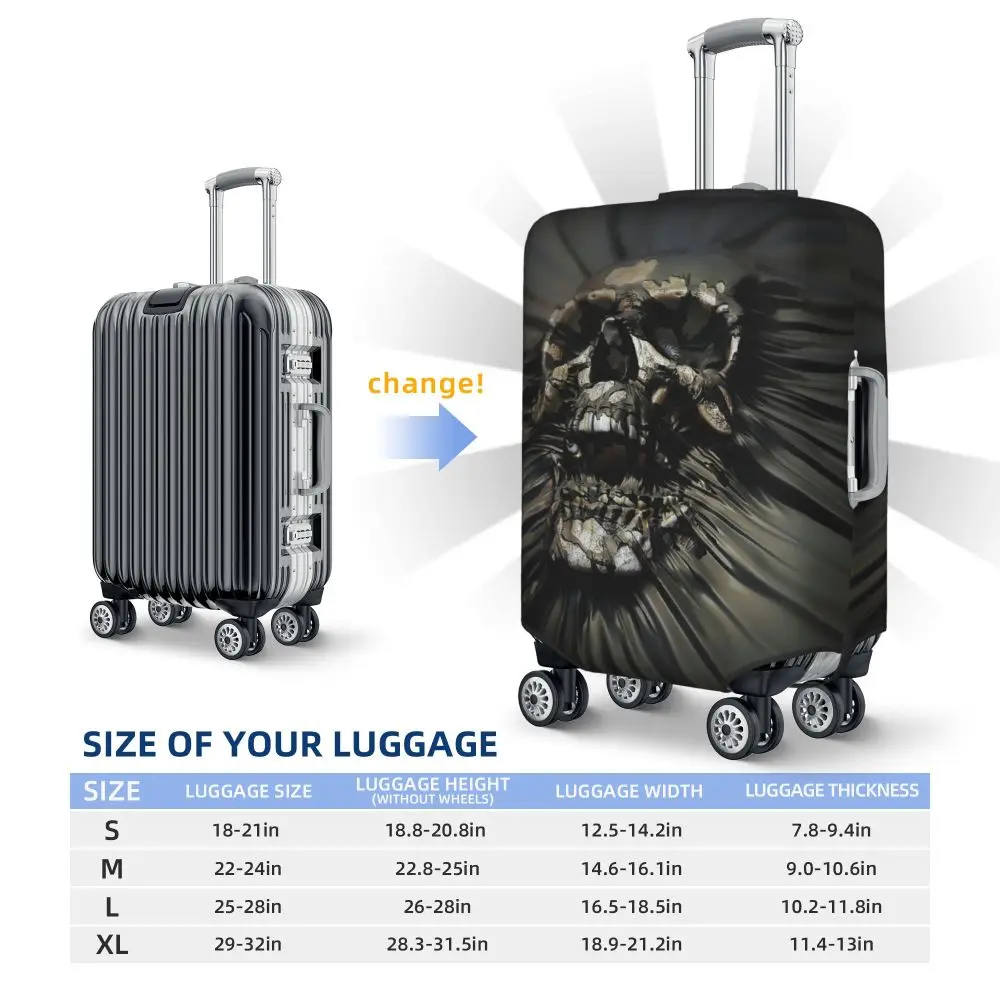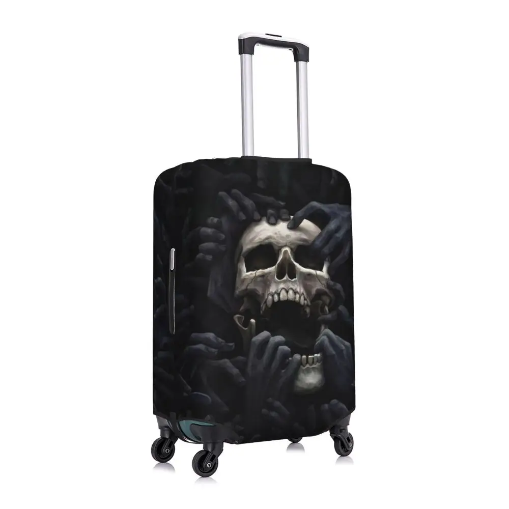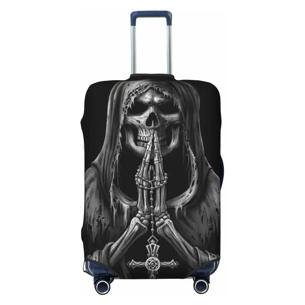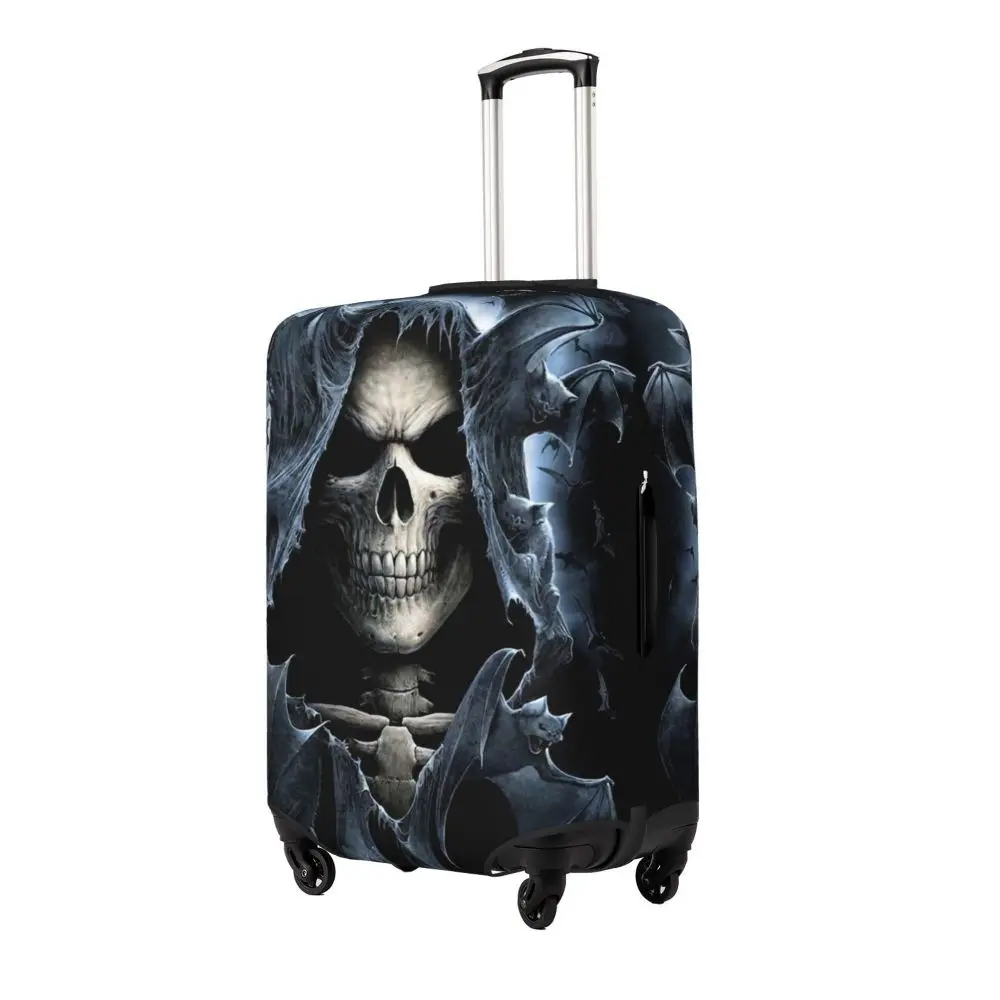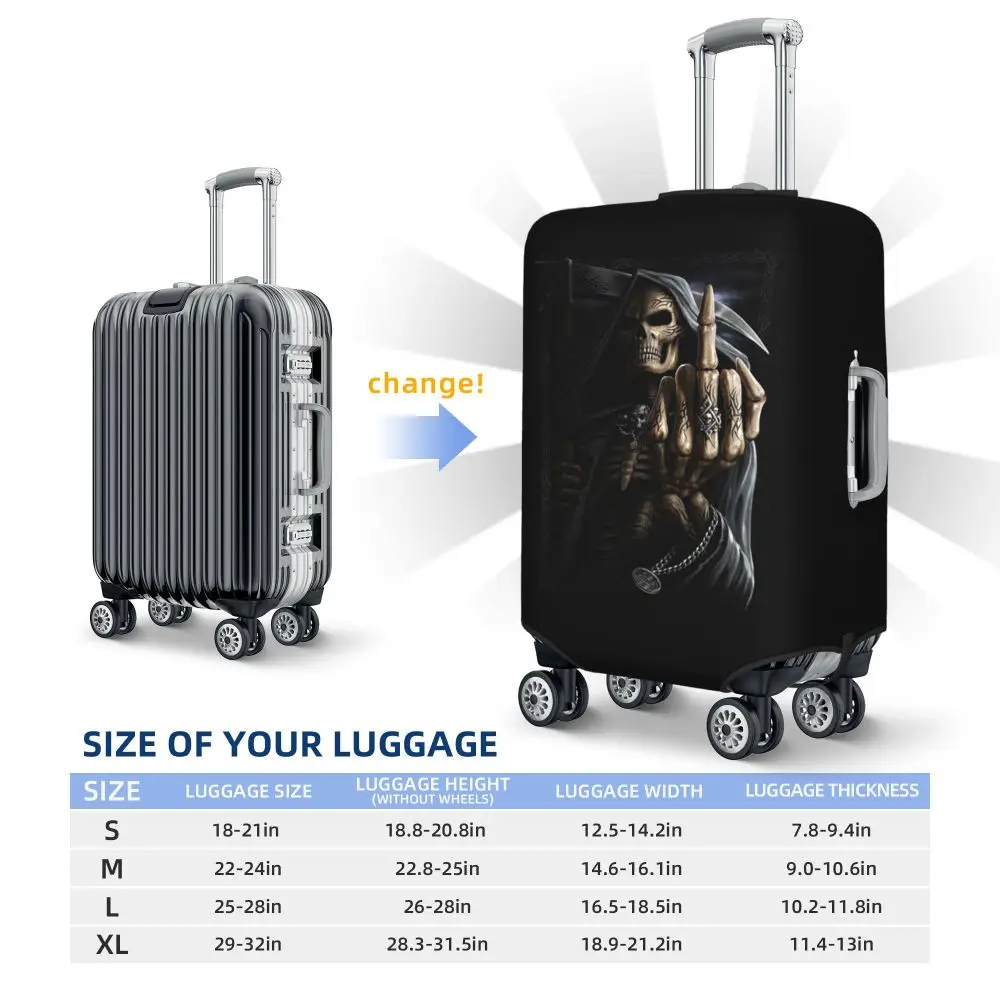 Protect your luggage in striking gothic fashion with this skeleton death skull suitcase cover, designed for travelers who want both bold style and reliable protection. Made from durable, premium fabric, this cover is water-resistant, helping guard your suitcase against rain, splashes, dust, and dirt during every journey. The heat-resistant material maintains its shape and vivid print even under strong sun exposure and warm travel conditions.