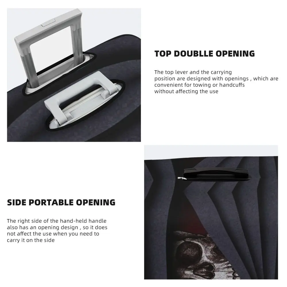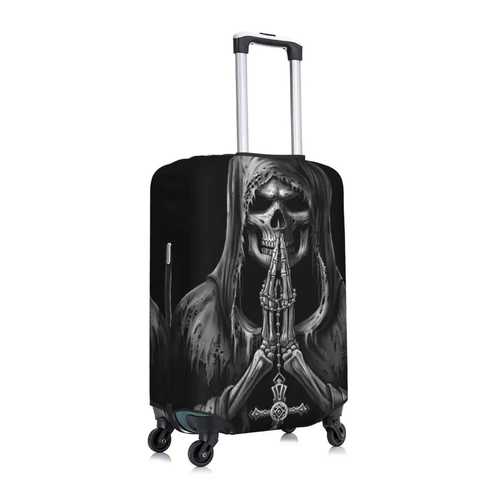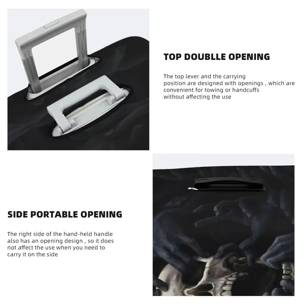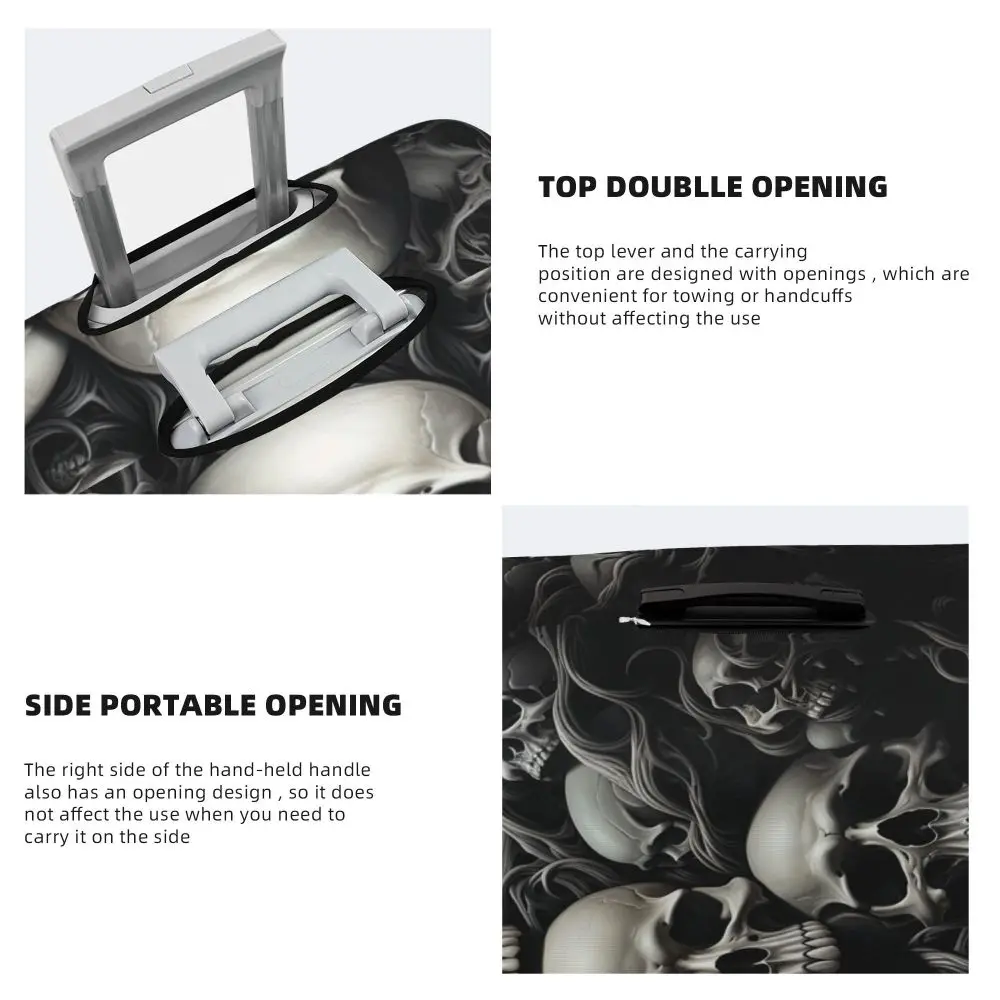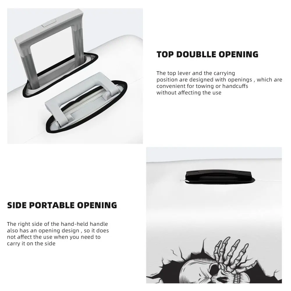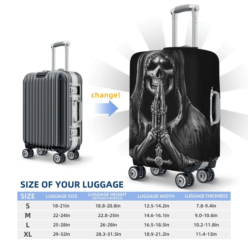 Protect your luggage in striking gothic fashion with this skeleton death skull suitcase cover, designed for travelers who want both bold style and reliable protection. Made from durable, premium fabric, this cover is water-resistant, helping guard your suitcase against rain, splashes, dust, and dirt during every journey. The heat-resistant material maintains its shape and vivid print even under strong sun exposure and warm travel conditions.