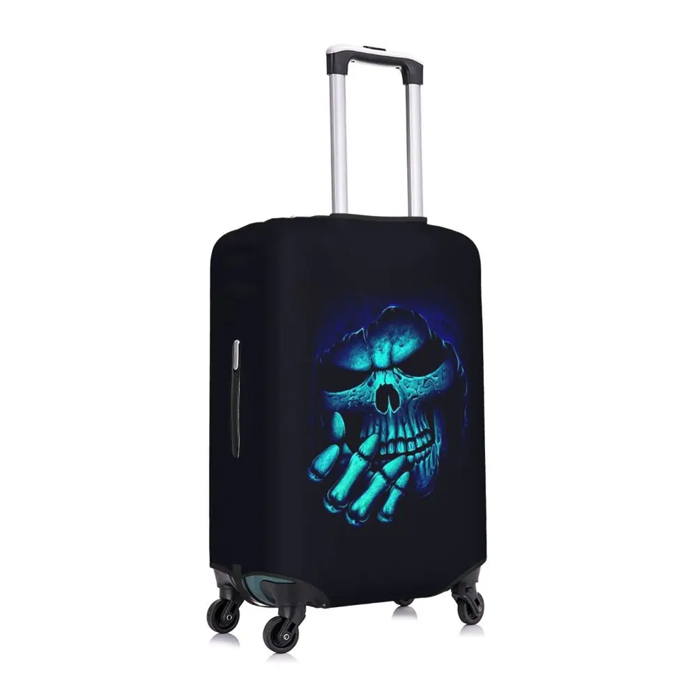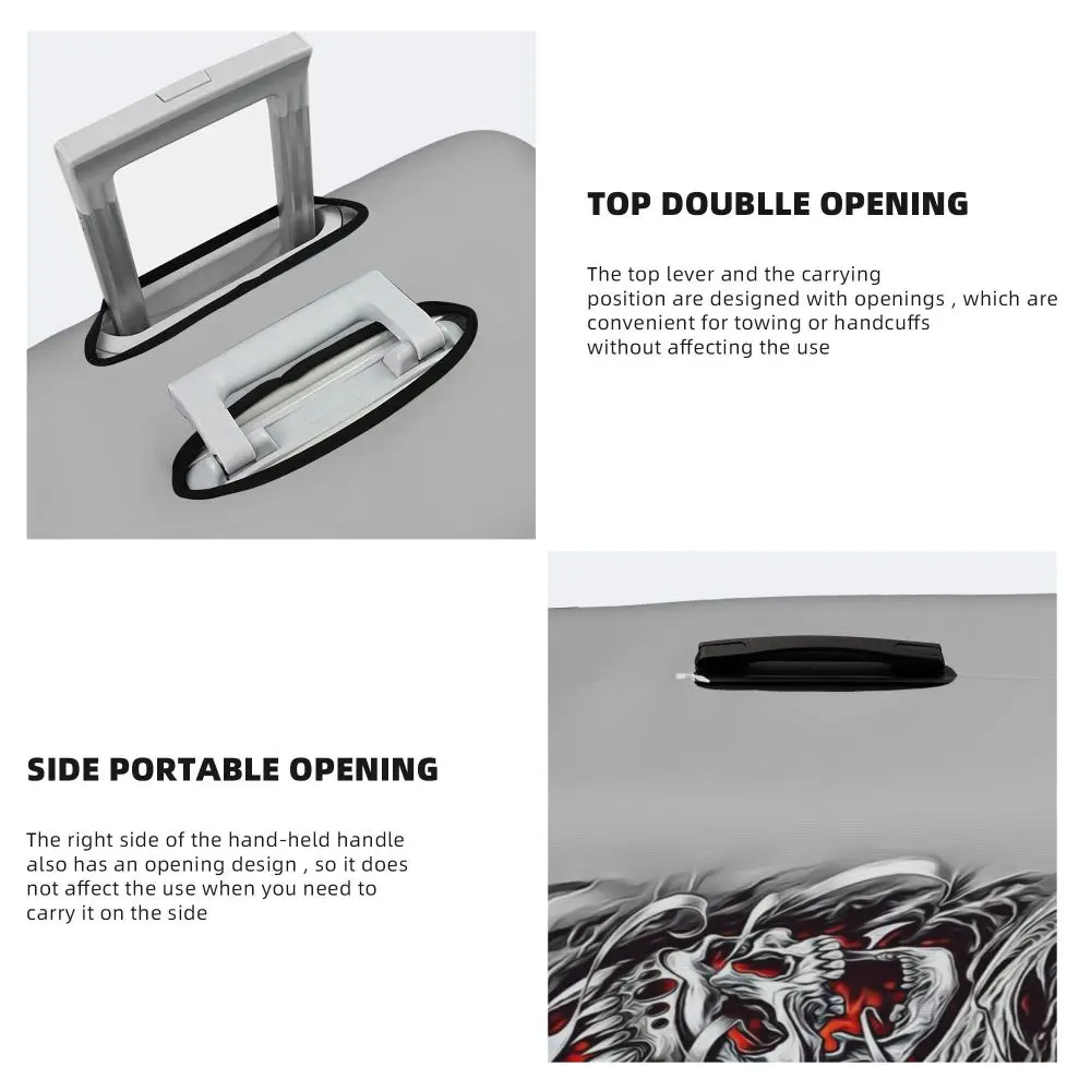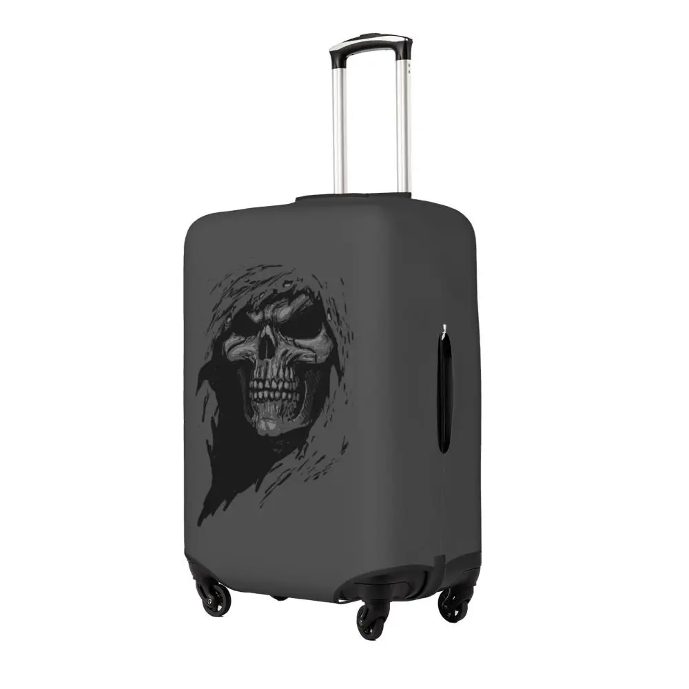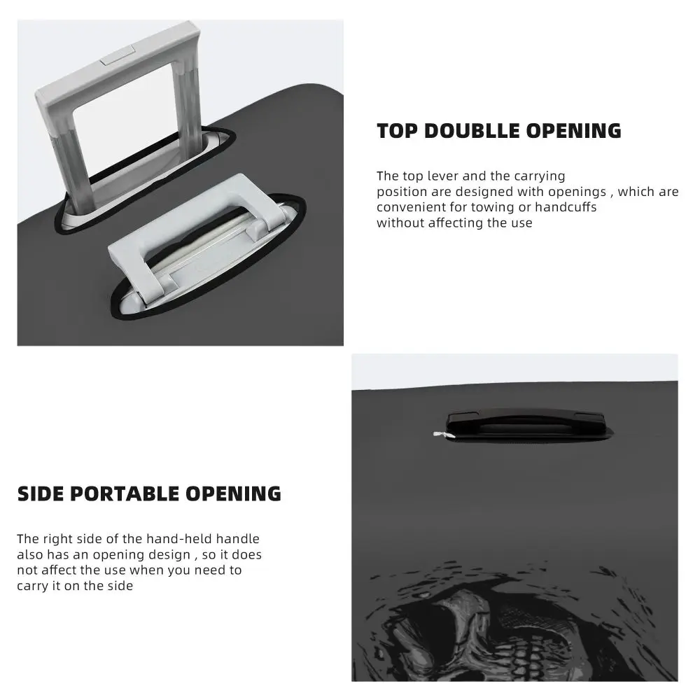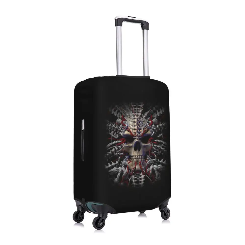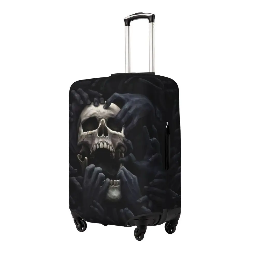 Protect your luggage in striking gothic fashion with this skeleton death skull suitcase cover, designed for travelers who want both bold style and reliable protection. Made from durable, premium fabric, this cover is water-resistant, helping guard your suitcase against rain, splashes, dust, and dirt during every journey. The heat-resistant material maintains its shape and vivid print even under strong sun exposure and warm travel conditions.