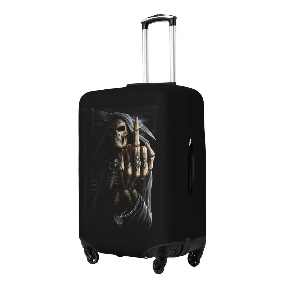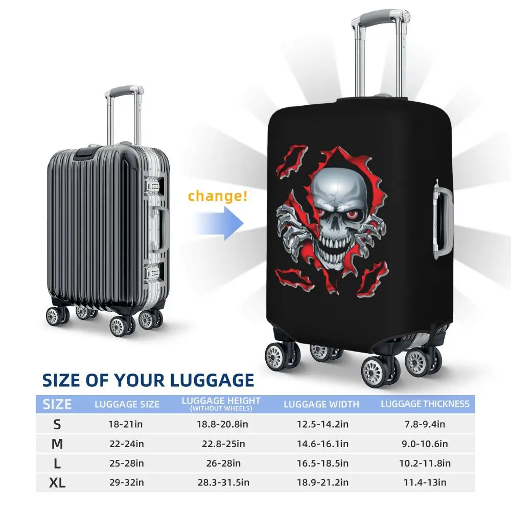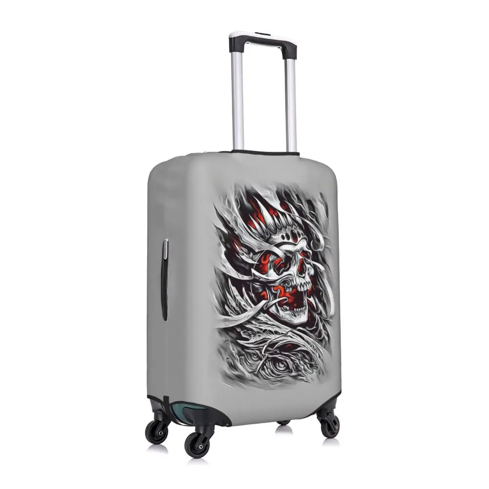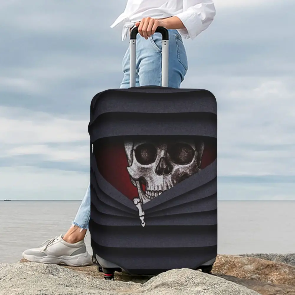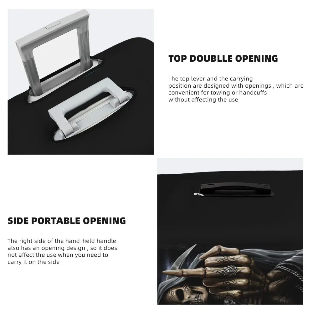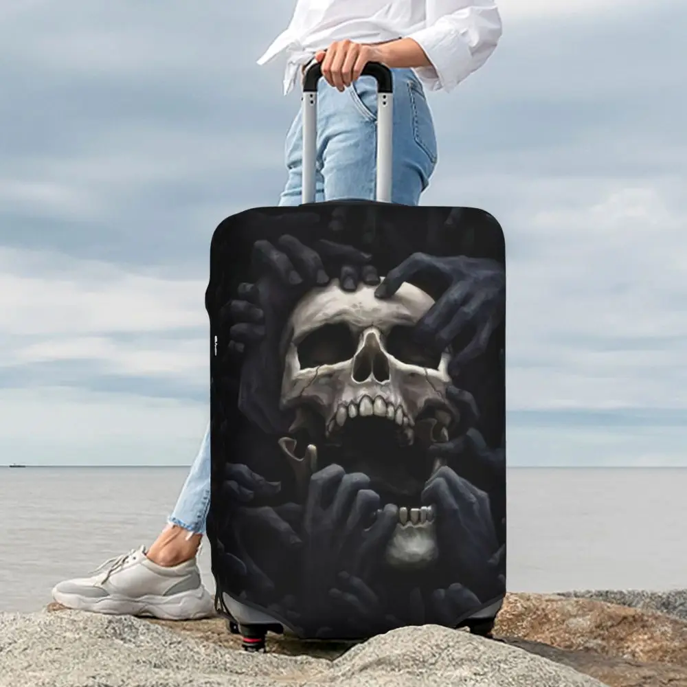 Protect your luggage in striking gothic fashion with this skeleton death skull suitcase cover, designed for travelers who want both bold style and reliable protection. Made from durable, premium fabric, this cover is water-resistant, helping guard your suitcase against rain, splashes, dust, and dirt during every journey. The heat-resistant material maintains its shape and vivid print even under strong sun exposure and warm travel conditions.