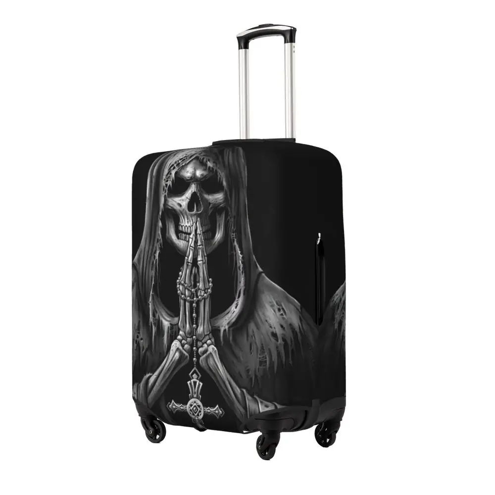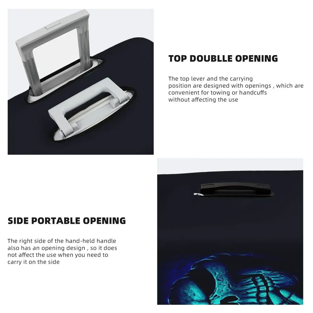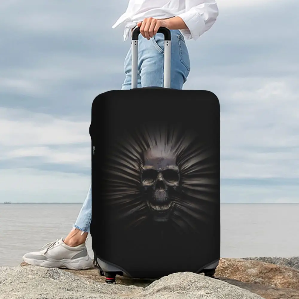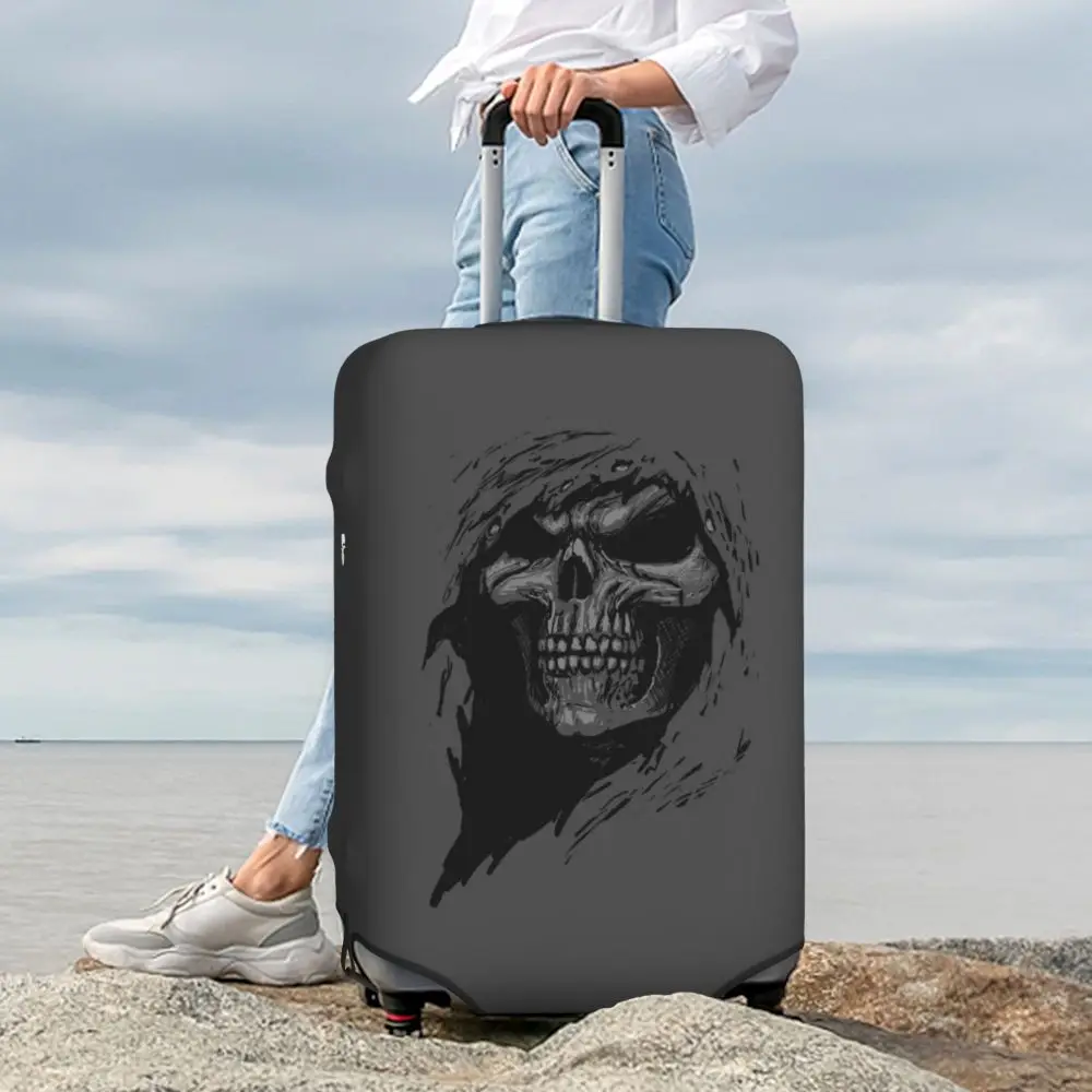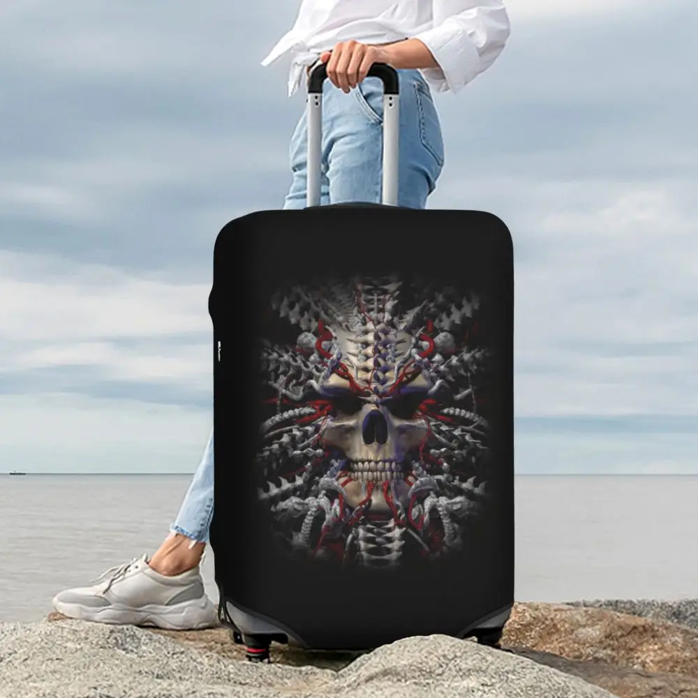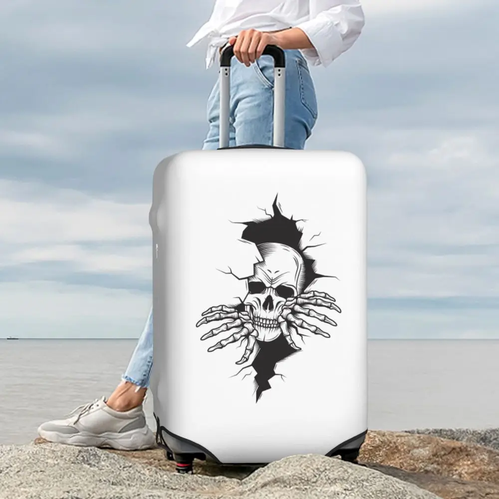 Protect your luggage in striking gothic fashion with this skeleton death skull suitcase cover, designed for travelers who want both bold style and reliable protection. Made from durable, premium fabric, this cover is water-resistant, helping guard your suitcase against rain, splashes, dust, and dirt during every journey. The heat-resistant material maintains its shape and vivid print even under strong sun exposure and warm travel conditions.