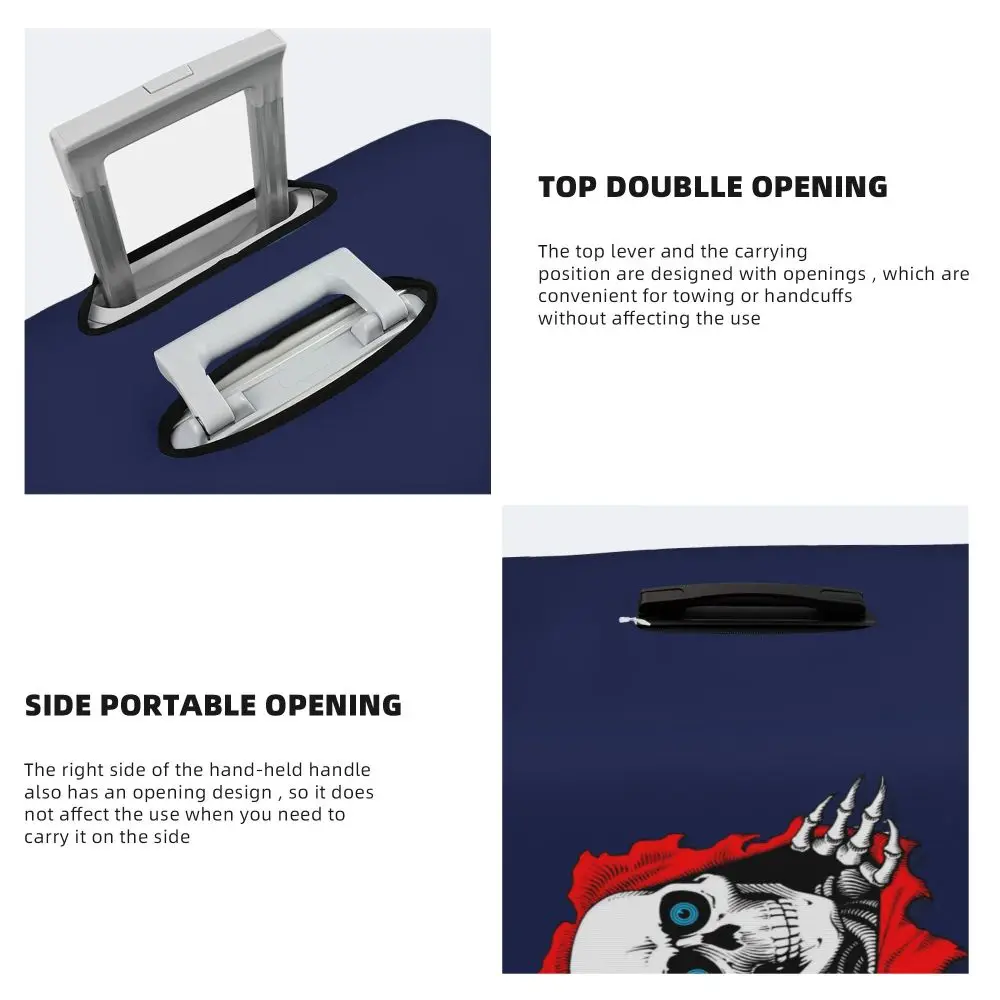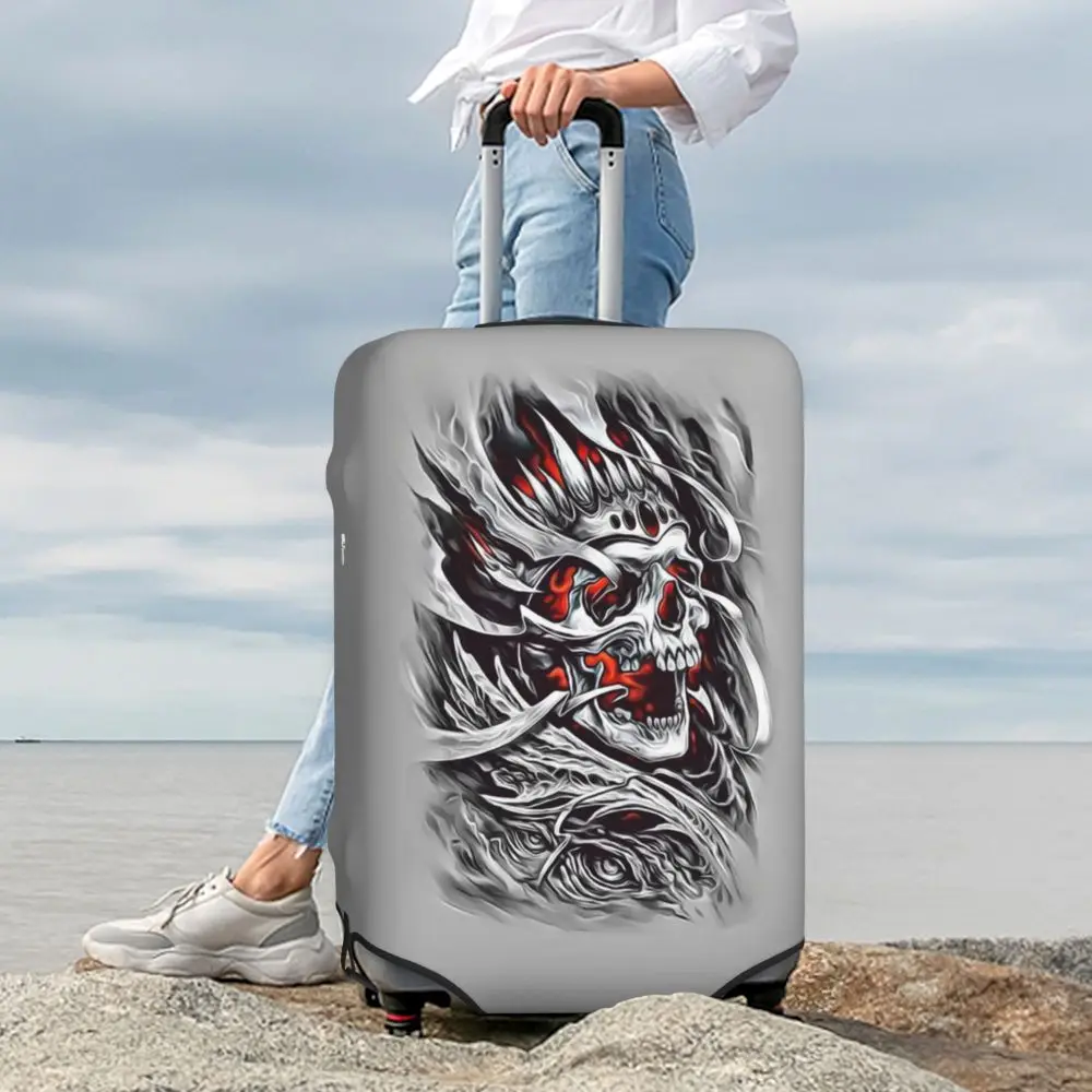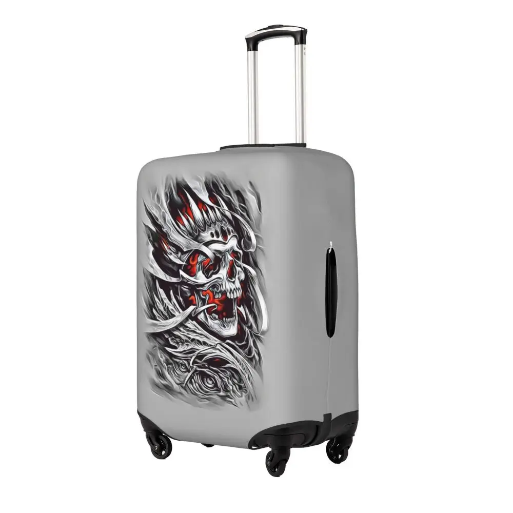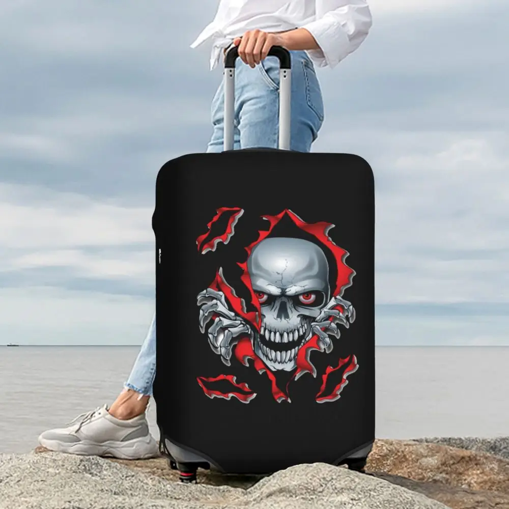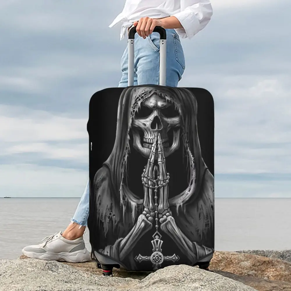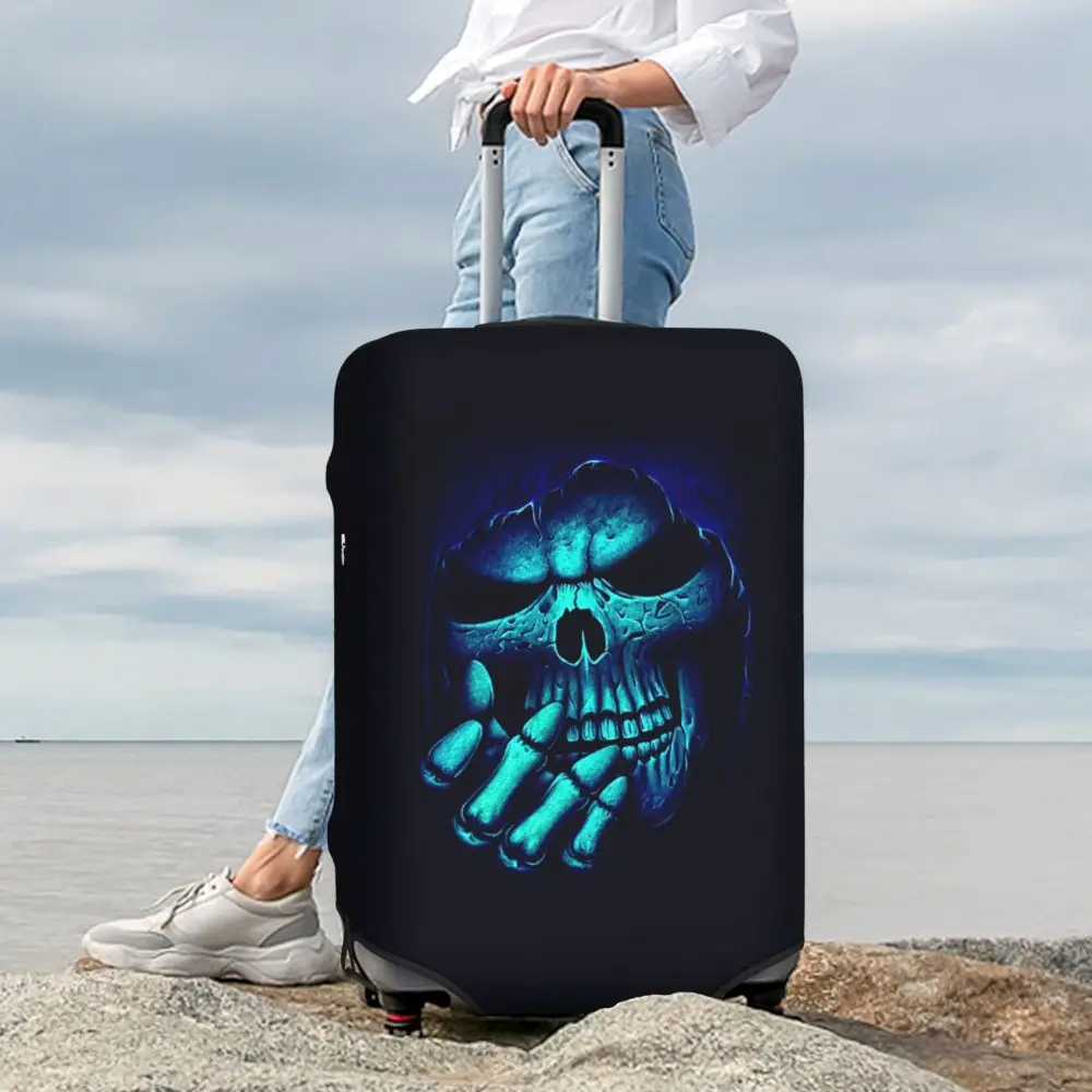 Protect your luggage in striking gothic fashion with this skeleton death skull suitcase cover, designed for travelers who want both bold style and reliable protection. Made from durable, premium fabric, this cover is water-resistant, helping guard your suitcase against rain, splashes, dust, and dirt during every journey. The heat-resistant material maintains its shape and vivid print even under strong sun exposure and warm travel conditions.