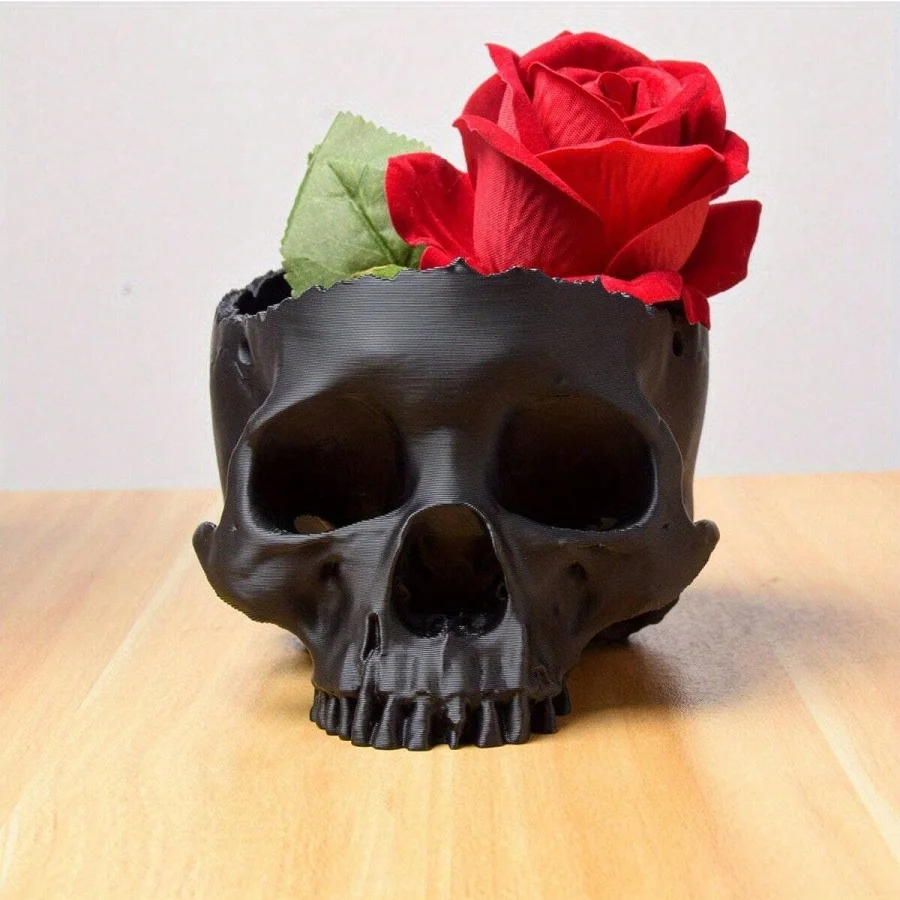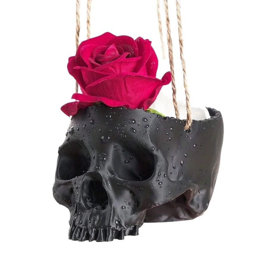 Add a bold gothic touch to your space with this 3D Printed Skull Hanging Flower Pot, a unique blend of creativity and dark elegance. Designed as a skull-shaped planter, it’s perfect for displaying bonsai, small plants, or succulents while instantly elevating your home or office décor.